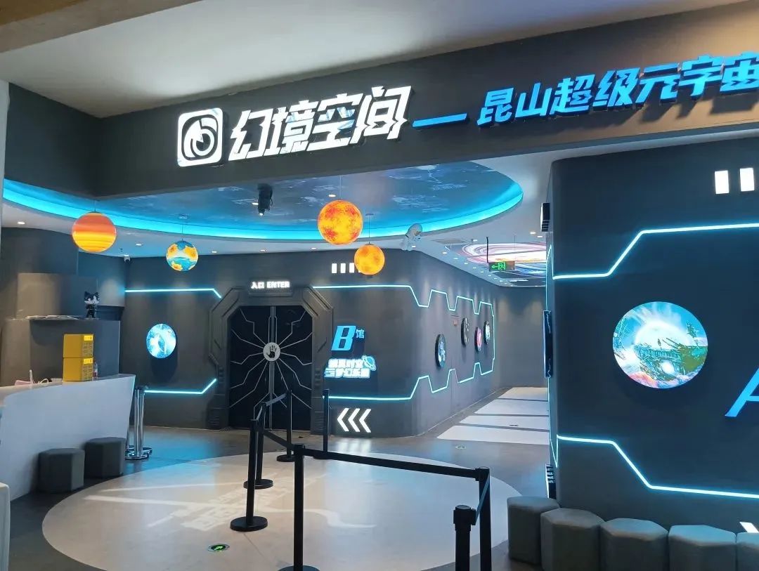 在昆山梦多多小镇,就有这样一个文旅元宇宙的落地应用场景:幻境空间。它是由苏州国之威文化科技有限公司打造的六维沉浸式体验场景,运用了33项核心VR技术,300平方米高清高刷LED显示屏,环绕全场的十通道全景音效,六块数吨重的超白超透玻璃组成的悬浮廊桥,让观众沉浸式体验《穿越侏罗纪》《宇宙探秘》《飞越地平线》等影片,给人一种跨越时空、穿梭天地的身临其境的感觉。
