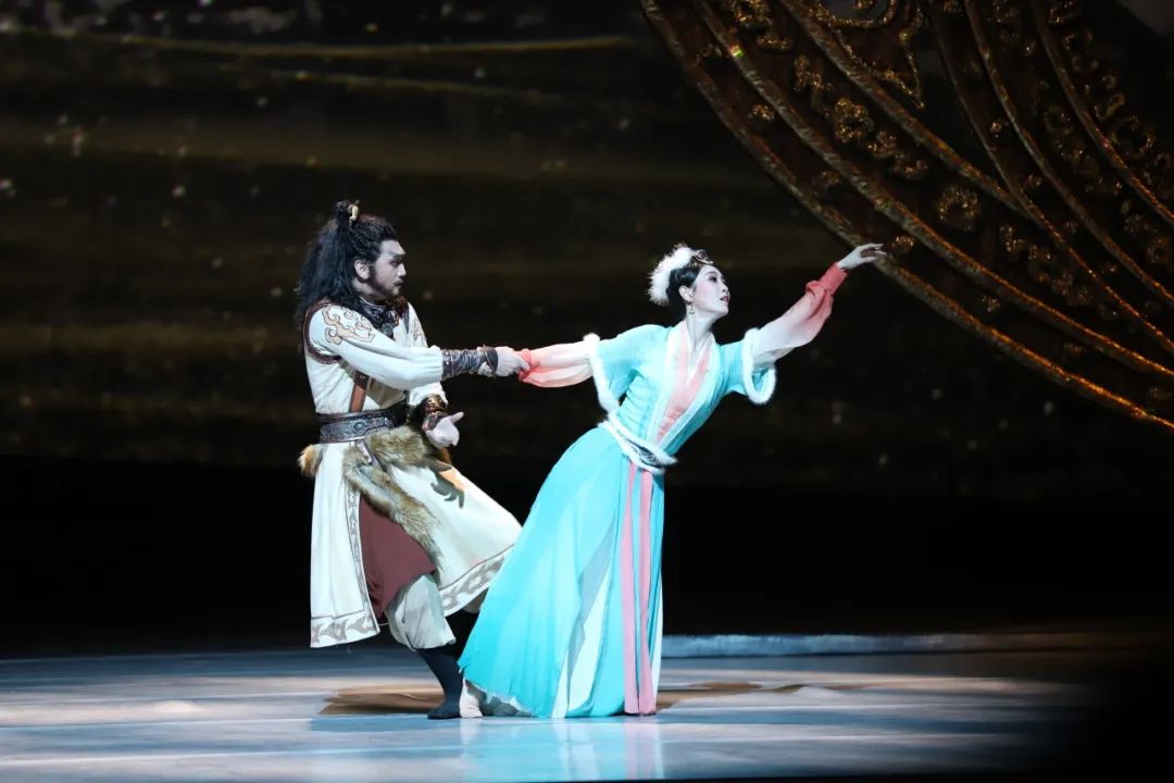 优美的舞蹈、精致的舞美,一开场,舞剧《胡笳十八拍》就将观众拉进了一个充满传统文化气息的历史场景中,让观众感受到了东方文化的神韵和魅力。舞台上有蒙古特色的哈木尔纹,桌案上摆放的汉代书案以及印章样式的剧名,为观众带来了沉浸式的舞剧氛围和视听享受空间。多民族的故事转换和视觉呈现是该剧的突出特点。在有限的三幕篇幅里,艺术家们用特色鲜明的舞蹈诠释出中华民族对于和平、友谊、人类共同利益的追求。在汉朝部分,演员用带有汉唐风格的古典舞,凸显大气雍容的场景;切换到匈奴部分,蒙古族舞蹈动作和音乐旋律相结合,恣意开阔、生机勃勃。流畅优雅的动作、高难度的跳跃和旋转,演员们饱含感情地将“文姬归汉”的故事串成了一条线。“剧情跌宕起伏,让我心潮澎湃。今天特地带小朋友一起来感受,让他也能更近距离接受中国优秀传统文化的熏陶。”观众陈婧说。