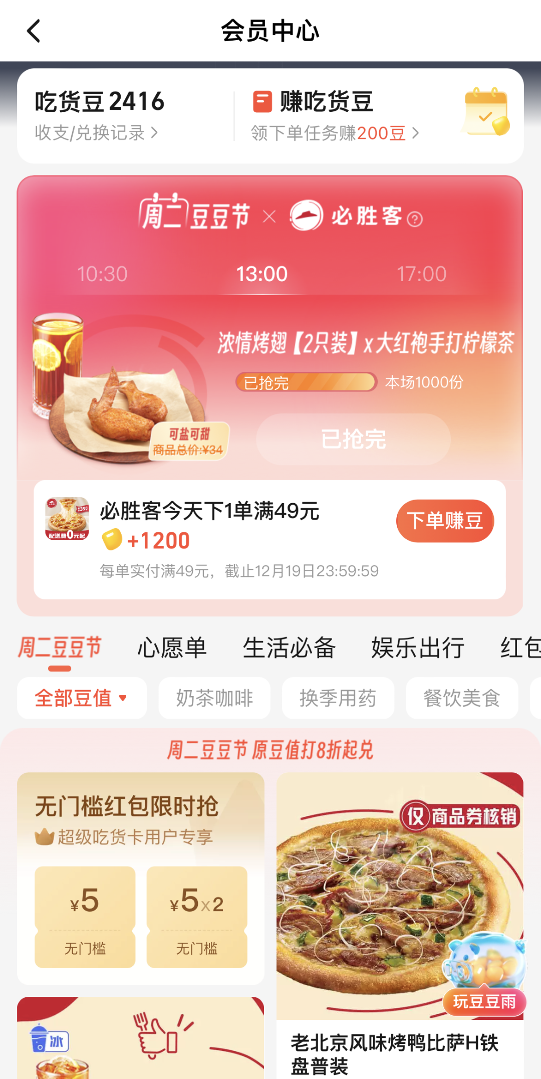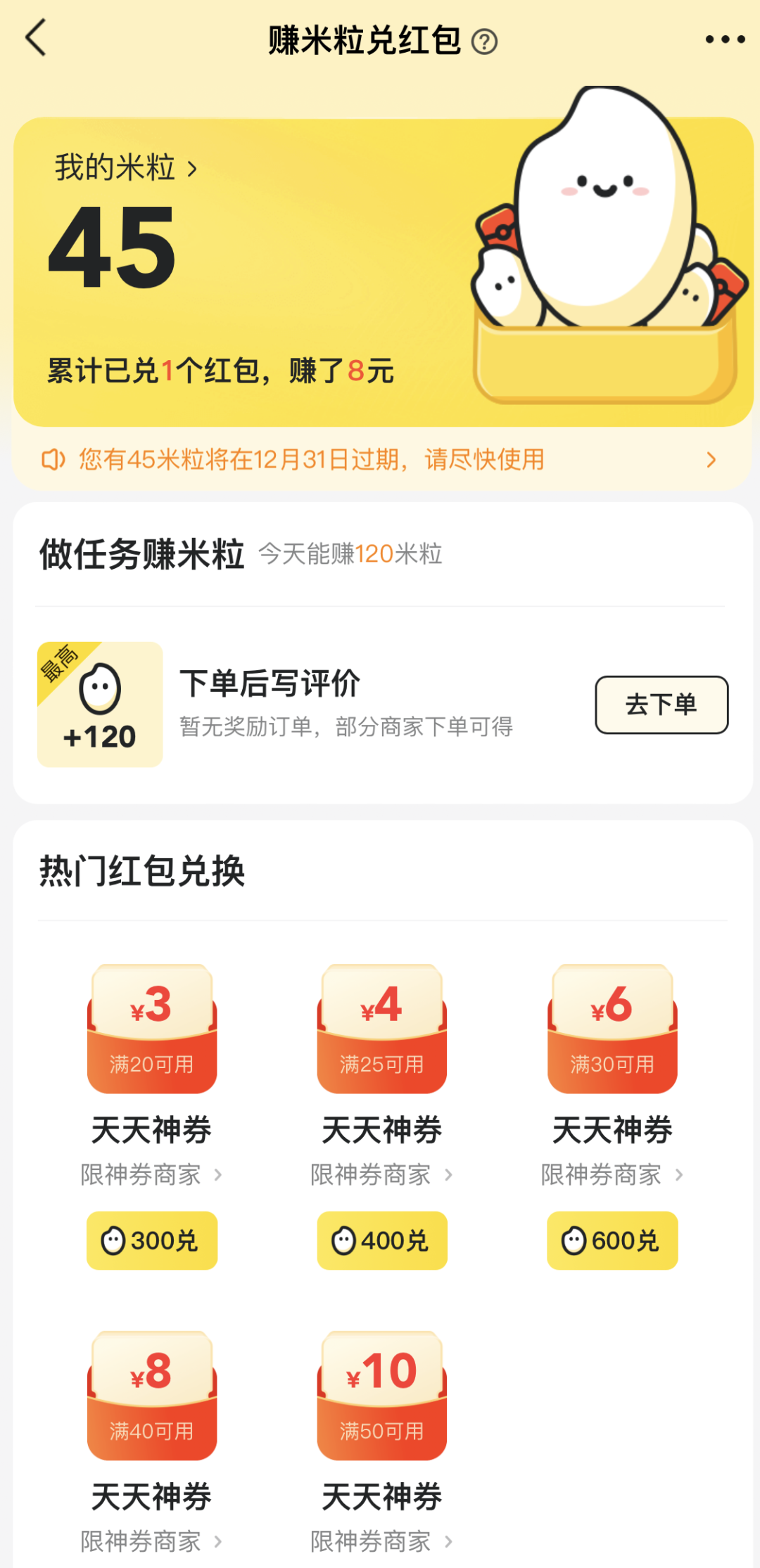 如果是拥有超级吃货卡会员,攒够数量后,点外卖结算时在“确认订单”页面,点击“饿了么红包”就能看到吃货豆可兑换的红包,不需要单独兑换。