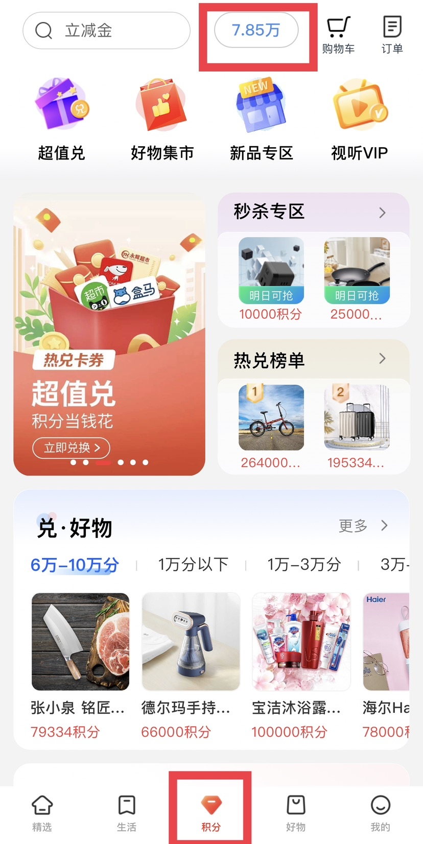 如果不知道自己有多少积分,可以登录对应手机运营商APP查看哦!APP还可以兑换更多礼品~