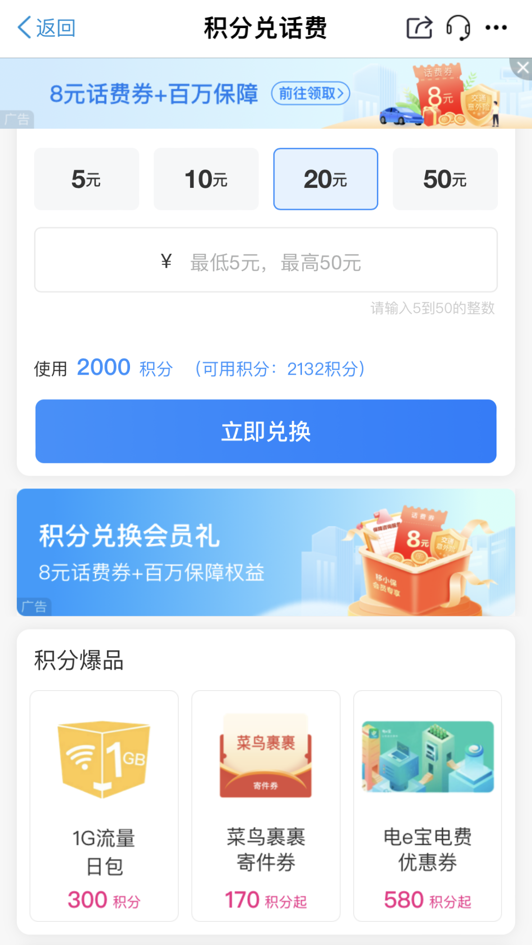 建议大家直接兑换话费,以移动为例,1000积分=10元话费。