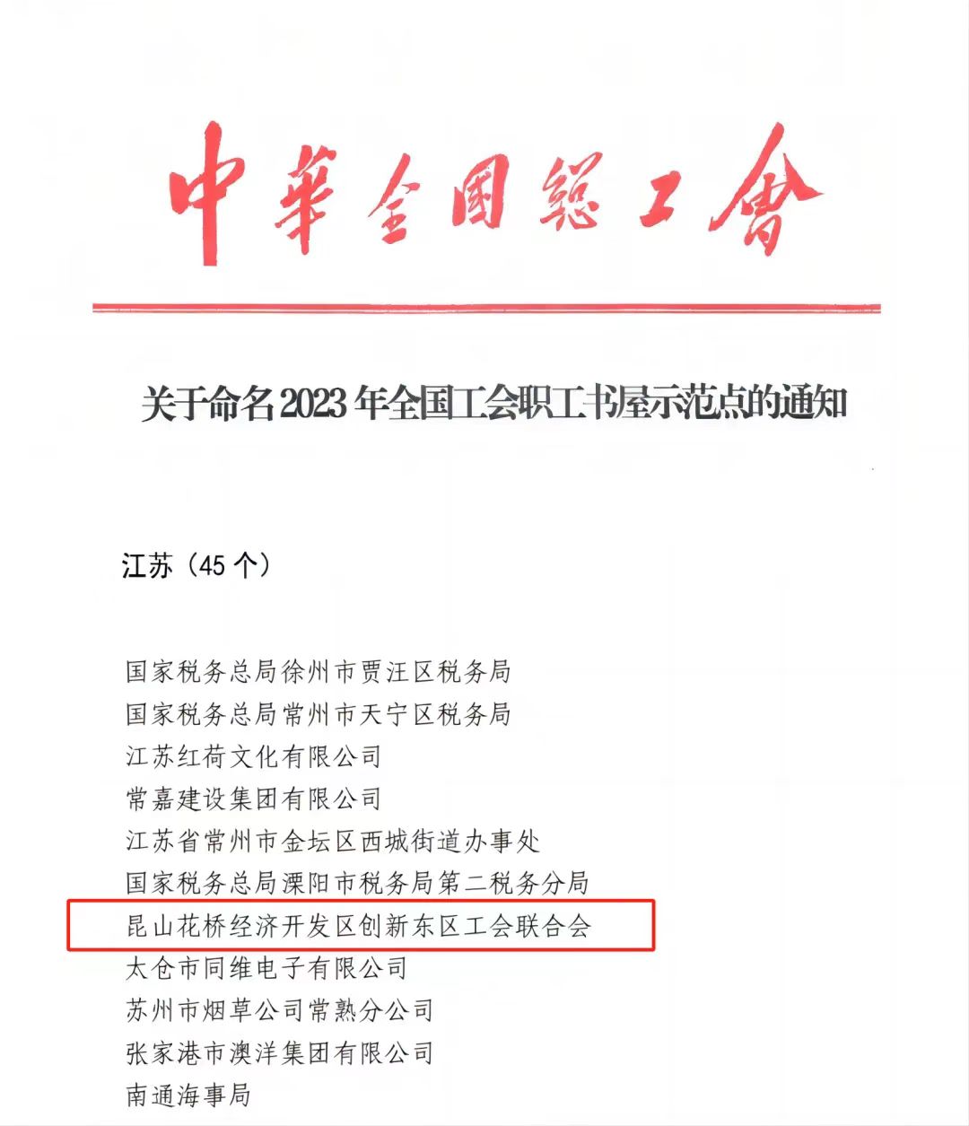 近日,中华全国总工会印发了《关于命名2023年全国工会职工书屋示范点的通知》,昆山花桥经济开发区创新东区工会联合会职工书屋被命名为2023年全国工会职工书屋示范点。