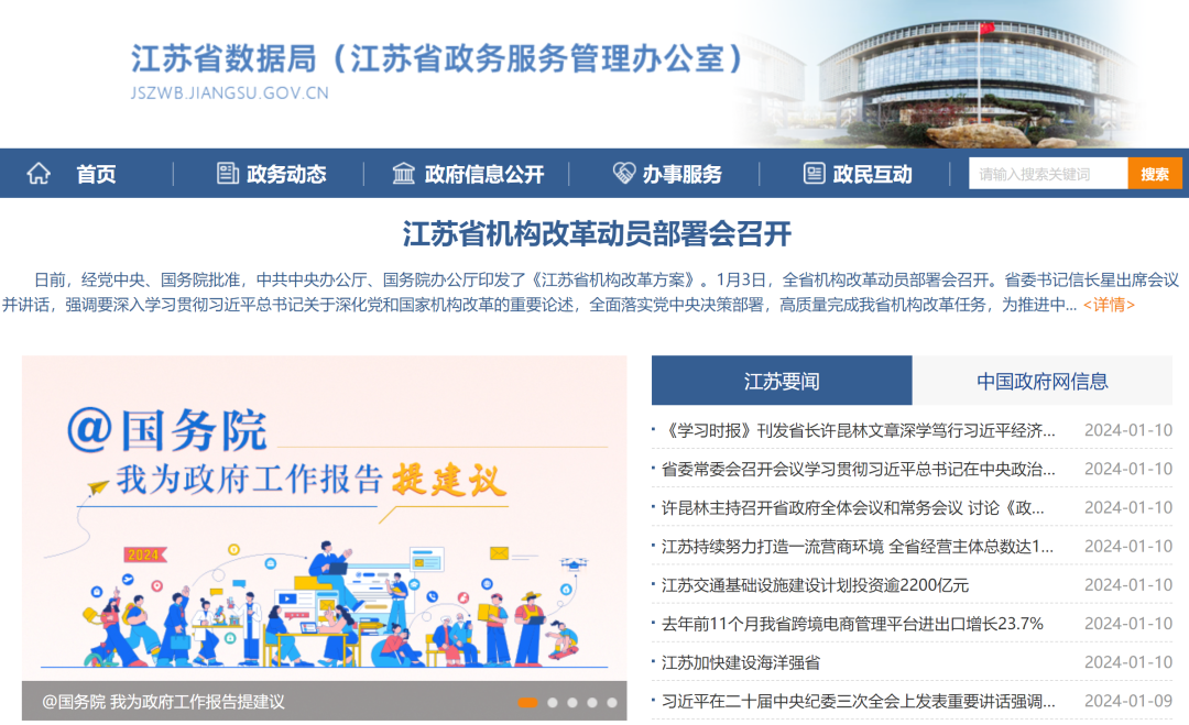近日,一批省级机构改革陆续落地。江苏省数据局(江苏省政务服务管理办公室)网站已亮相,其官网沿用了此前江苏省政务服务管理办公室的网址。