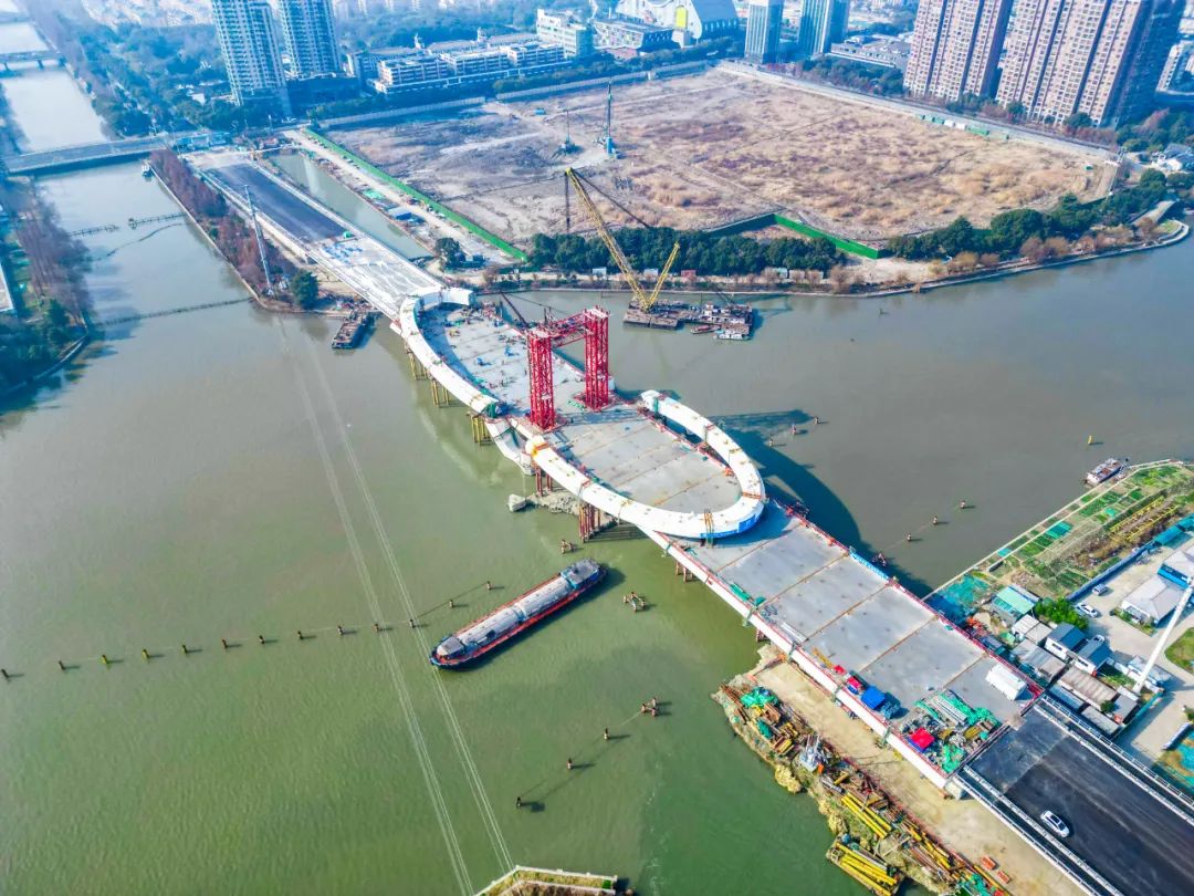 震川桥为苏州市内河最高桥梁,且在昆山桥梁建设中首次采用钢拱塔竖向转体施工工艺。仅单侧拱塔转体重量就高达1750吨,竖直65度转体,为目前江苏内河同类型转体施工之最。结合项目重点难点及现场作业环境,项目组通过主桥整体建模放样,建立BIM三维信息化参数模型,分解主体结构各单元构件,并对每一阶段施工工况进行受力分析,最终形成切实可行的施工方案。