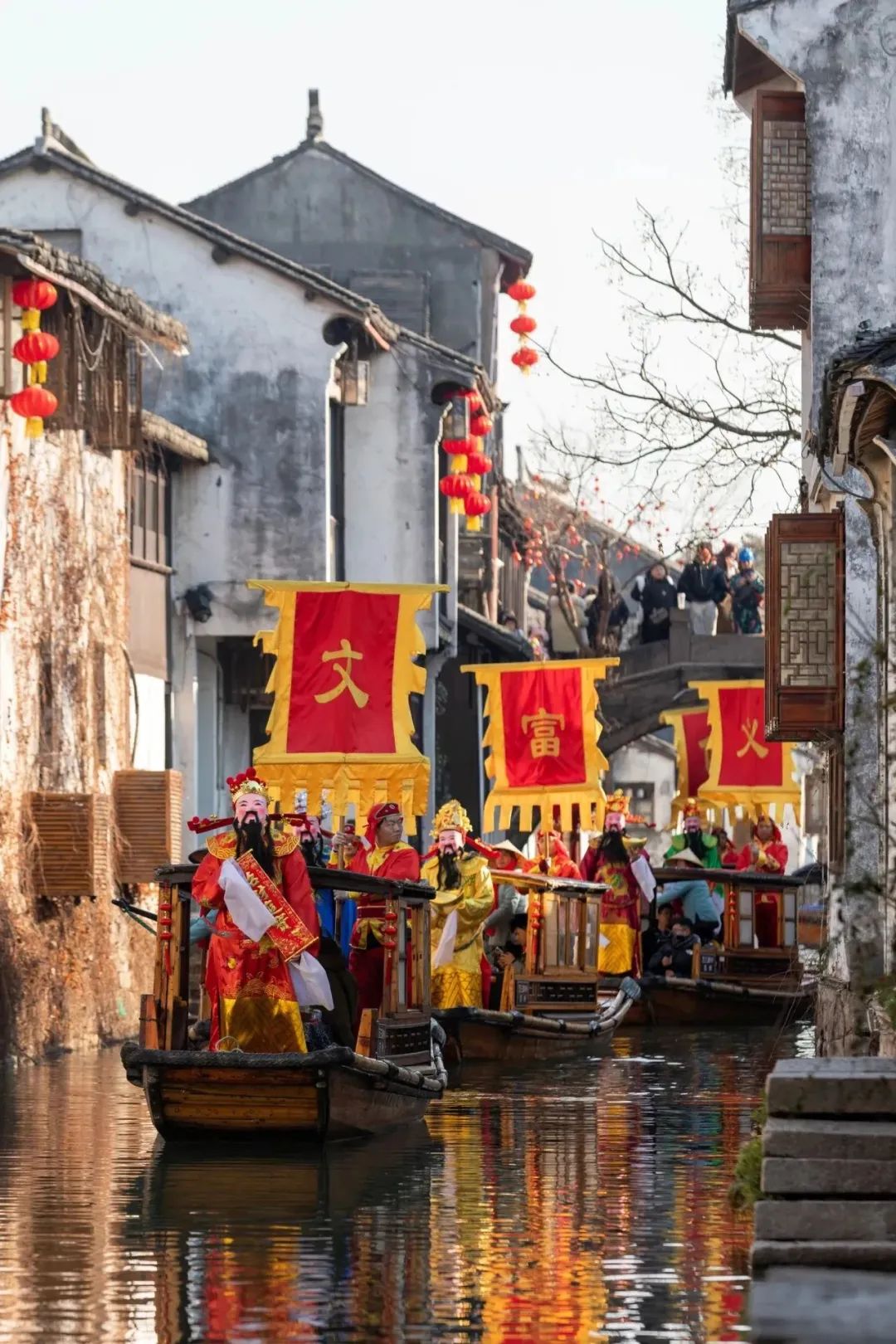 初五接财神,水上大巡游。随着满载热闹的摇橹船,缓缓驶向富安桥,独属江南水乡的年味,就旖旎开了。