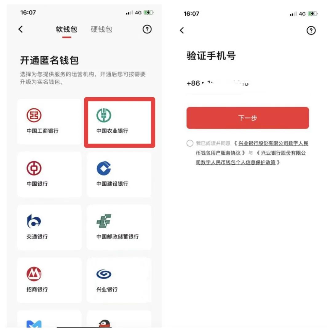 也可前往中国农业银行线下营业厅开通个人钱包。