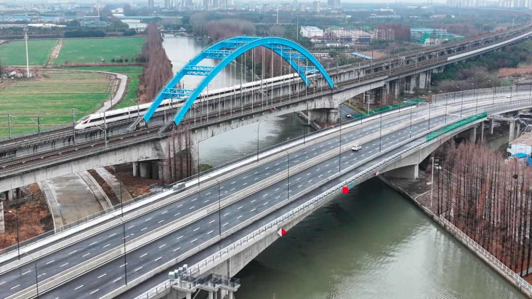 祖冲之路南延工程是市重点实事工程,起于前进西路交叉口,向南延伸跨越娄江后转向东南,接市场路改造段并下穿既有江浦中路,终点接既有朝阳西路,全长约3.67千米,主要涉及1对主线高架、1座下穿明挖隧道、2座下穿高铁地面桥、5座中小桥梁等,同步完善沿线雨污水、弱电、照明、交安、监控、绿化景观等附属设施。
