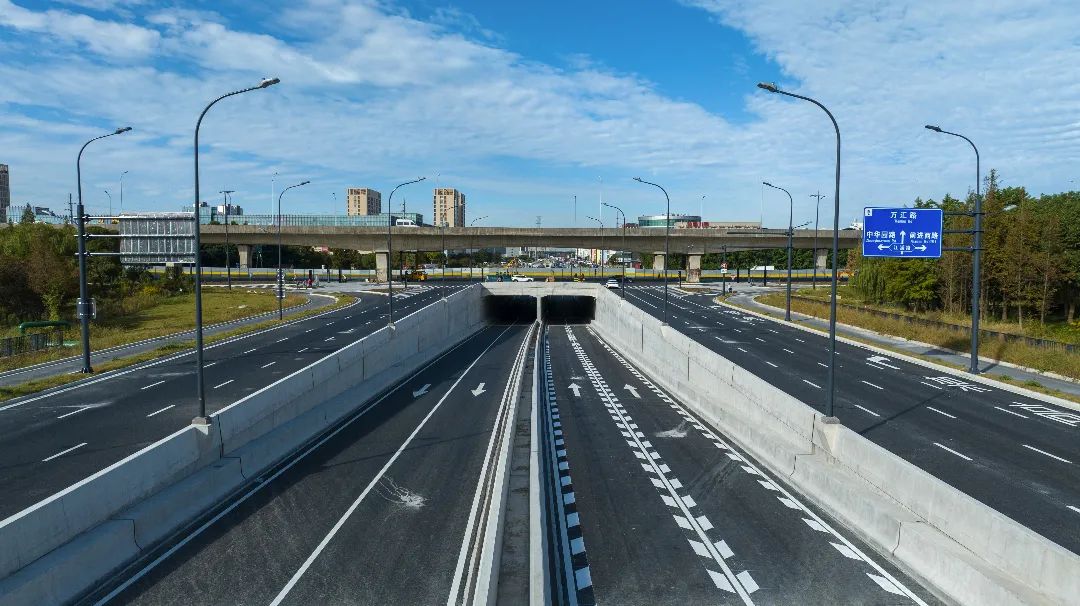 此次主线桥梁(前进西路-市场路)按双向六车道开放交通,同步开放两侧非机动车道,地面辅道及人行梯道保持封闭。市场路全线按双向四车道开放南侧半幅。朝阳西路隧道及地面辅道已于2023年11月开放交通。开放范围全线限速30千米/时,前进路段为禁货范围,市场路货车禁止向西驶入桥梁段,需按照沿线标牌指引,在文康路及祖冲之路路口掉头,往东自江浦路绕行。