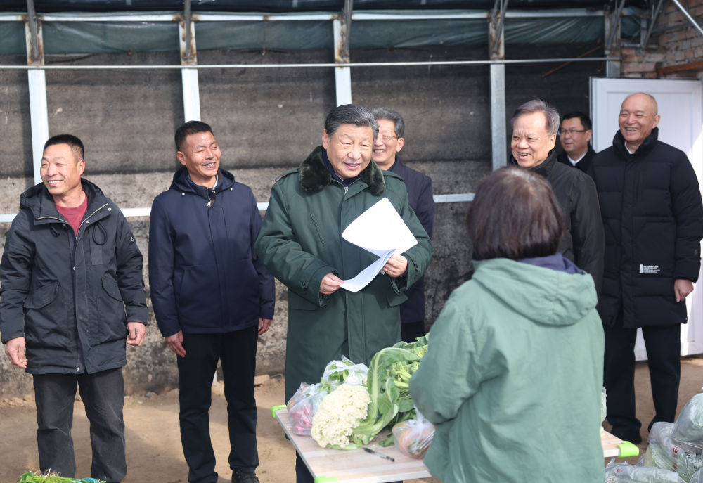 2月1日至2日,中共中央总书记、国家主席、中央军委主席习近平来到天津,看望慰问基层干部群众。这是1日上午,习近平在西青区辛口镇第六埠村实地察看去年洪涝灾害后当地农业生产恢复等情况时,走进大棚看蔬菜长势。新华社记者 燕雁 摄