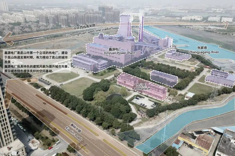 作为昆山市第一座立项的热电厂,鑫源燃煤热电厂曾静静地守望着张家港河中来往的货船,见证了昆山经济腾飞。随着昆山城市规划不断完善,近年来,热电厂逐步面临电力等市政设施外迁、厂房空间与城市生活割裂、服务设施不足等问题,同时为响应国家“退二进三”政策,热电厂最终整体搬迁。