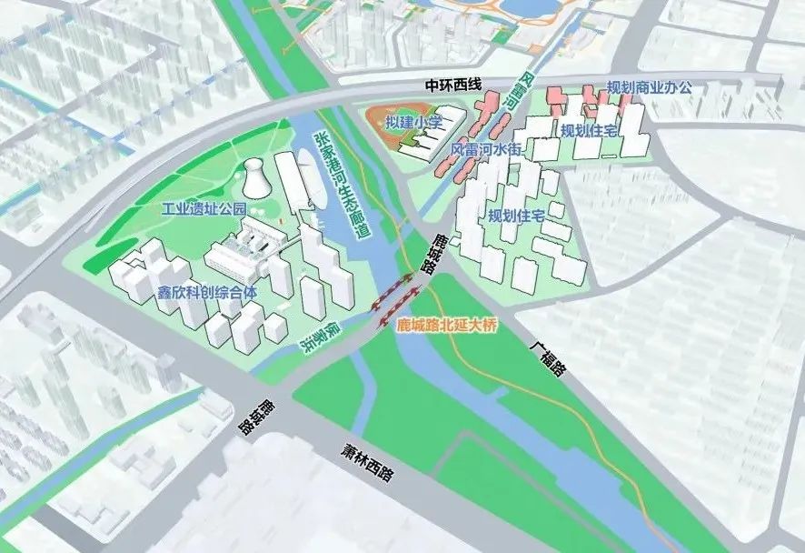 工业遗址公园所在的风雷河片区,就是环玉湖区域四大片区之一。该片区南至萧林路、北至中环西线、东至鹿城路,将以工业遗址公园为依托、以风雷河水街为骨架,通过布局商业街区、引入优质业态,统筹生态人居、美好生活等城市功能,打造底蕴丰富、活力时尚的宜居生活区。