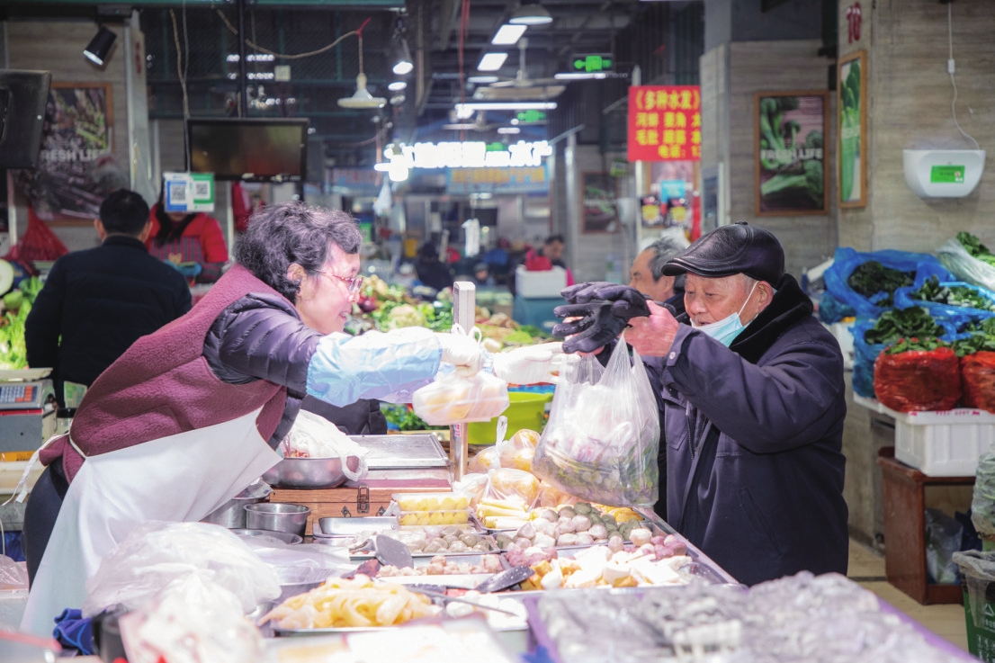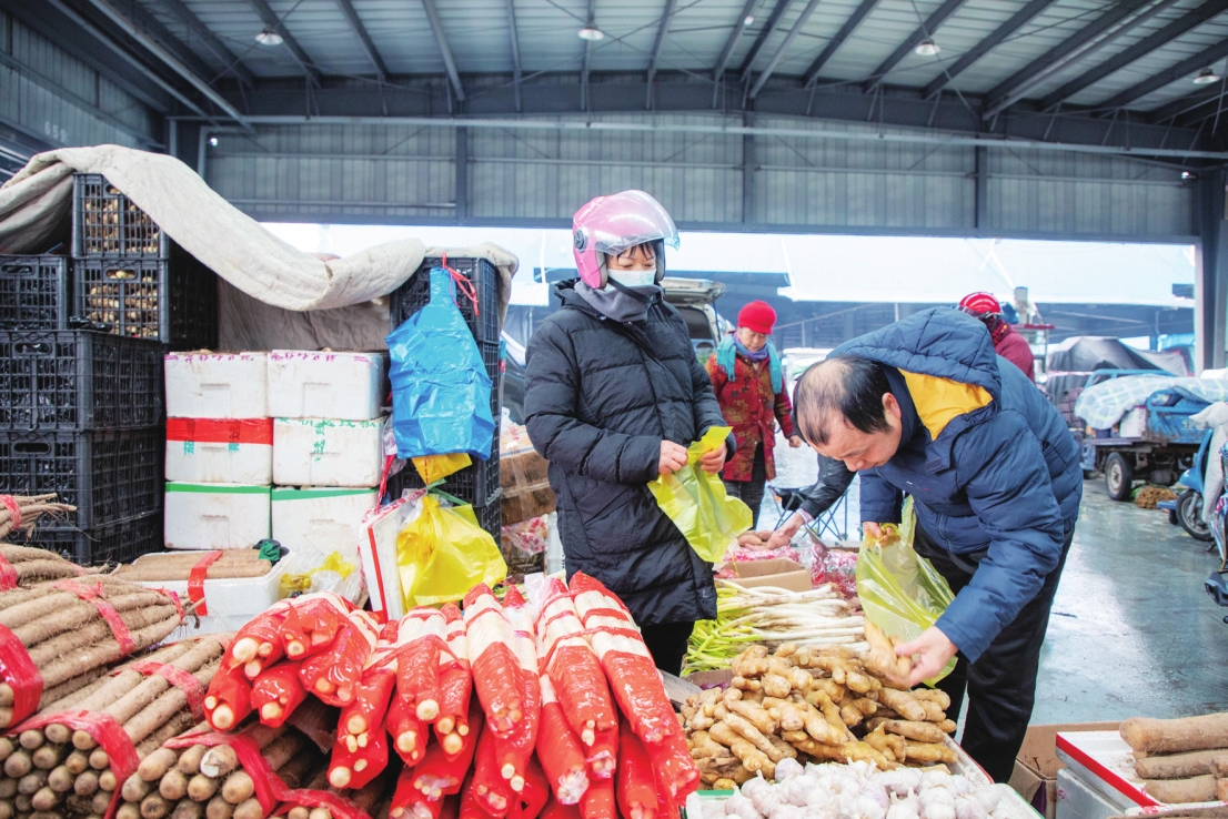 记者还在柏庐批发市场、玉龙市场等地看到,节前农贸市场呈现购销两旺态势,主副食品供应充足、价格平稳、种类多样,春节期间市民的“菜篮子”需求有保障。在柏庐批发市场,商户们正忙着春节备货,摊位上各种蔬菜、肉类、水果和干货一应俱全。朱坤和家人在柏庐批发市场经营着一家牛羊肉专卖店,他表示,最近肉类单价较稳定,店里生意很好,平均每天能售出牛肉超1000斤、羊肉约700斤。