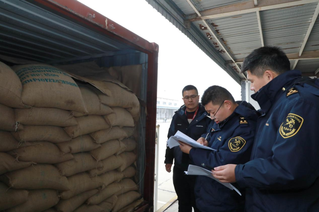 2月12日,大年初三,当大部分人还沉浸在团圆喜悦之中时,在昆山海关特殊监管区查验平台内,小昆却看到了昆山海关特殊区域管理科副科长陈昌忙碌的身影。此时此刻,他正与同事仔细比对着货物申报单据,对一批来自埃塞俄比亚的38吨咖啡生豆进行称重、数量核对、局部取样,查验无误后予以放行,卡车进出监管区前后用时不到一个小时。