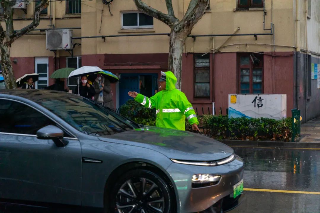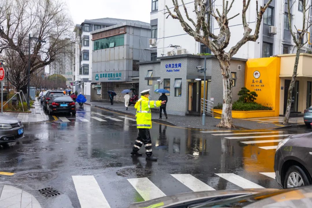 交警、家长志愿者们有序引导交通