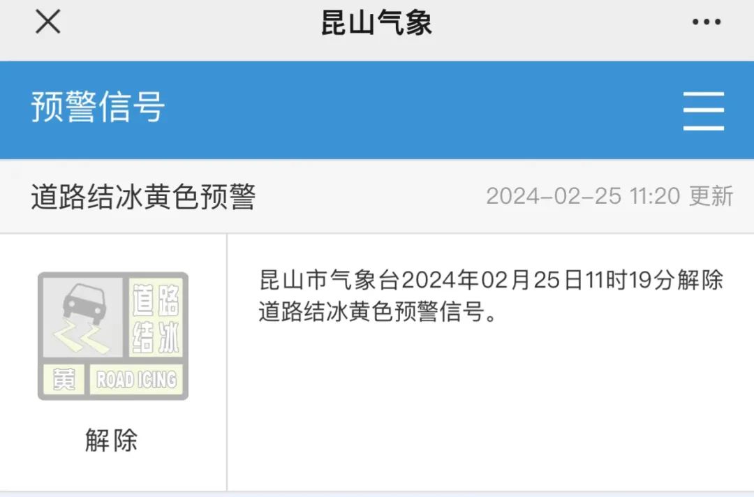 昆山市气象台解除