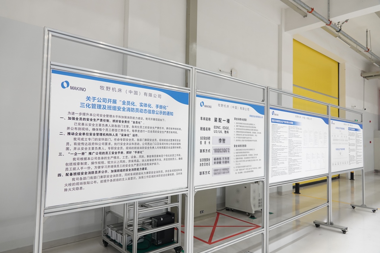 为推动“六化”建设任务落实提供科学有力支撑,昆山市安委办立足全市实际,编制《工业企业“全员化、实体化、手册化”三化管理及班组安全消防岗位动态信息公示参考指南》(以下简称《指南》)。对照《指南》要求,牧野机床(中国)有限公司建立健全全员安全责任制并落实好公示制度和考核管理制度,设置专门从事安全生产管理的机构并在显著位置处公示,运用“一企一册”的安全生产策略制定个性化企业员工安全手册,以班组为单位配备班组安全消防值班长和班组安全消防值班员并公示等措施,取得了显著成效。