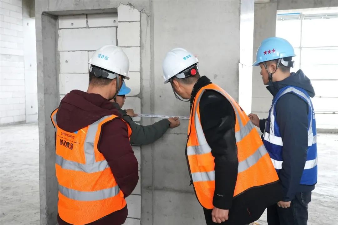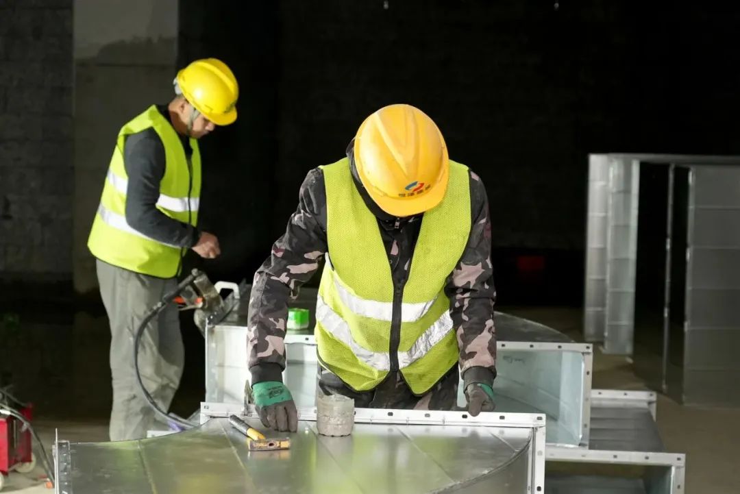 走进项目施工现场,这里给人的第一印象就是“洁序净美”,被评为江苏省三星级文明工地。立面安全网围护整洁美观,堆场整齐有序,路面平整清爽,每个细节都能感受到城市“建设之美”。进入建筑内部,质检人员正在用回弹仪检测承重墙的混凝土强度。深入地下二层,工人们正加紧安装吊筋、支架、风管等设备,为后续消防综合管网敷设提供支撑。
