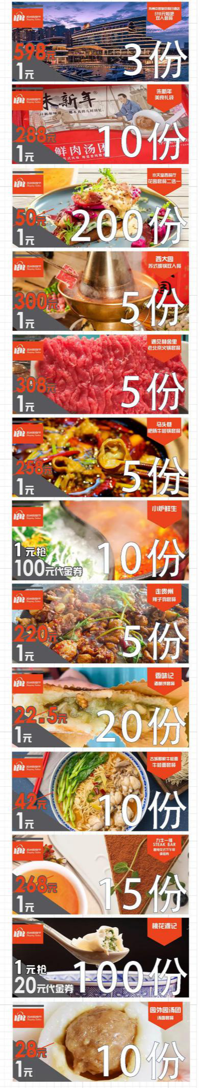 有知名大牌超低折扣商品、餐饮店超值折扣券超值电器、昆曲评弹演出套票等惊喜!