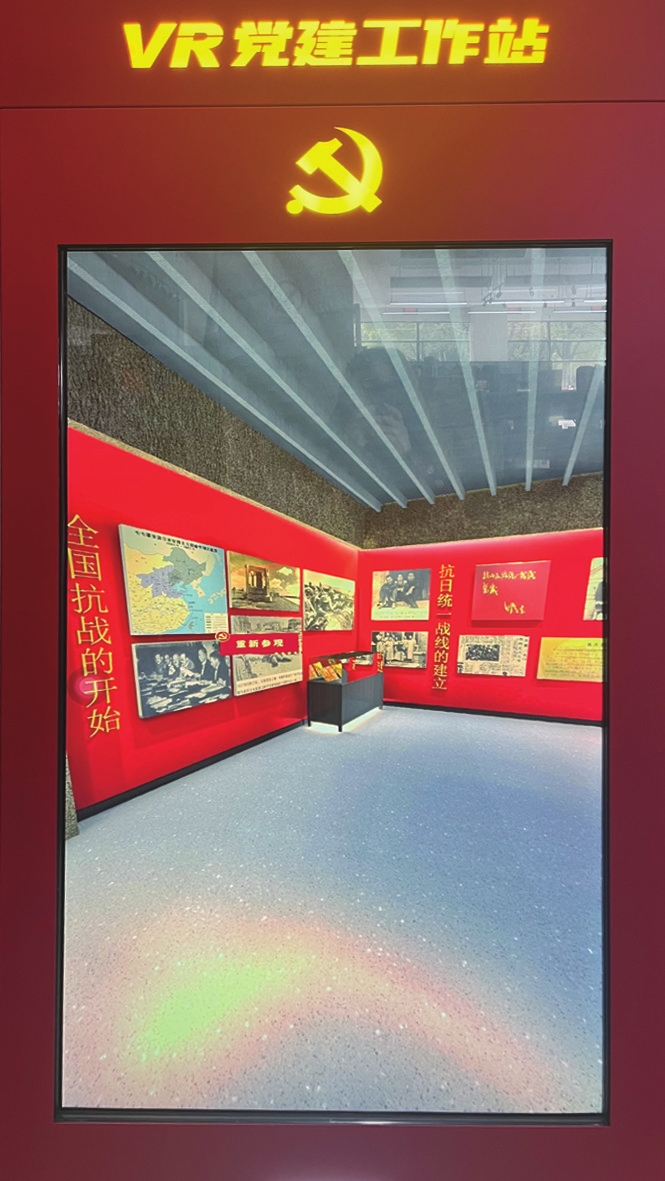 2023年,融田创新推出“VR党建工作站”,广受好评。在机器上,VR党建、百年回顾、知识测评、组织管理等功能分区一应俱全。戴上VR眼镜,使用者甚至可以“穿越时空”,置身渡江战役、平型关大捷、红军过草地等场景,通过沉浸式体验,传承红色基因,加强党性教育。