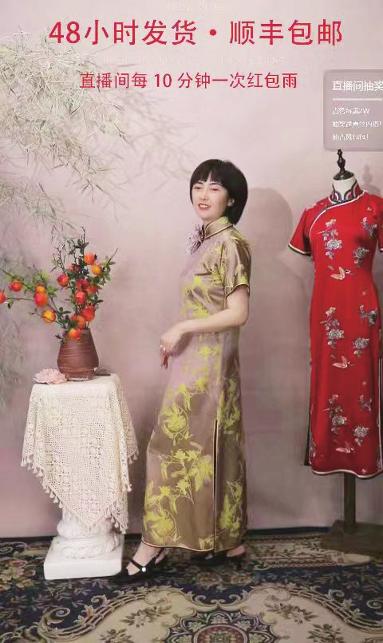 直播,对红馆旗袍来说是销售渠道,对邓丽元来说更是传播中国旗袍绝美风韵和传播传统文化的契机。然而,做直播并不是件容易的事情。邓丽元通过购买书籍、网上教程、课程培训等途径学习直播的经营理念和方法,并坚持不断摸索、总结经验,闯出了一片天地。可喜的是,红馆旗袍直播间不仅吸引了来自国内各地区的旗袍粉丝,还得到了众多国际友人的关注和互动。