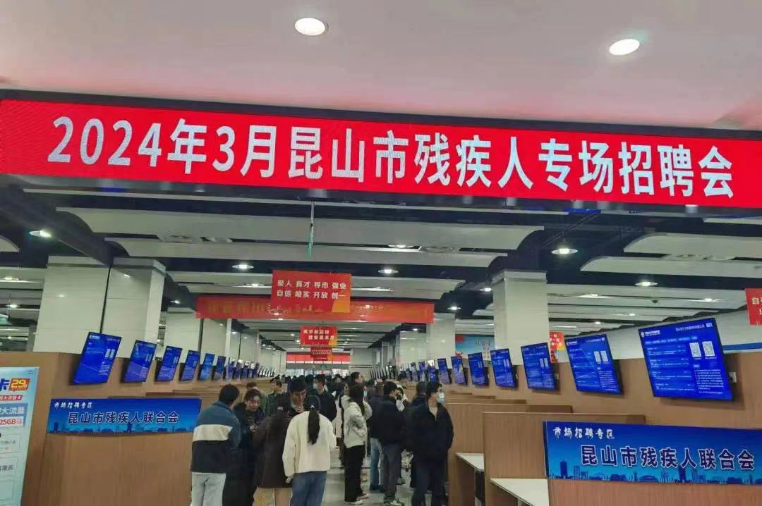 3月16日上午,由昆山市残疾人联合会和昆山人力资源市场共同举办的“以爱助残 让梦展翅”——2024年昆山市残疾人专场招聘会在昆山人力资源市场举行,94家招聘单位入场招贤纳士,精准帮扶残疾人群体实现高质量就业。