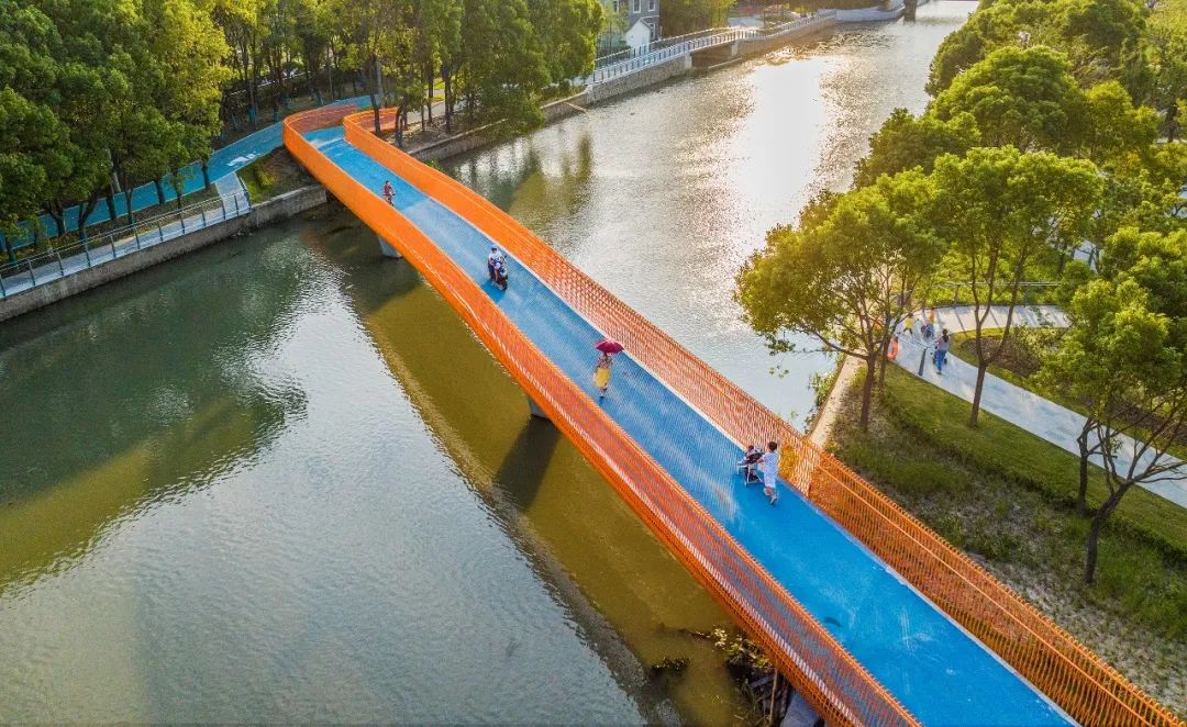 项目位于庙泾河北侧、虹祺路西侧,面积约3.2公顷,建设慢行步道约0.6公里,目前庙泾河中央水廊已基本建成,打通庙泾河生态廊道沿线景观断点,全面连通城市慢行步道。