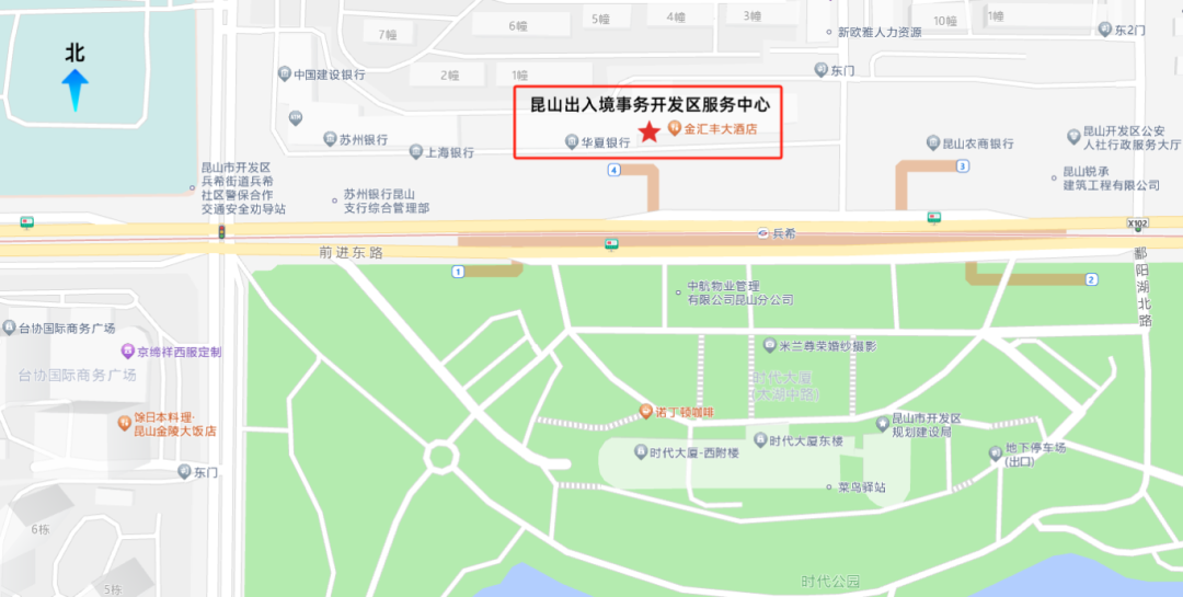 昆山出入境事务开发区服务中心(昆山市前进东路386号,苏州轨交11号线兵希站4号出口)