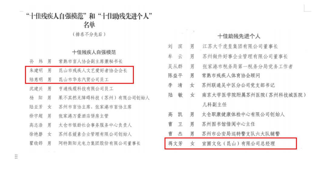 和“十佳助残先进个人”名单公布