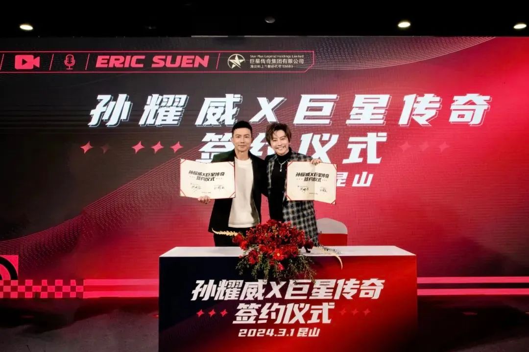 与男歌手、演员孙耀威的签约仪式