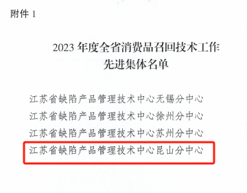 省缺陷产品管理技术中心昆山分中心受表彰