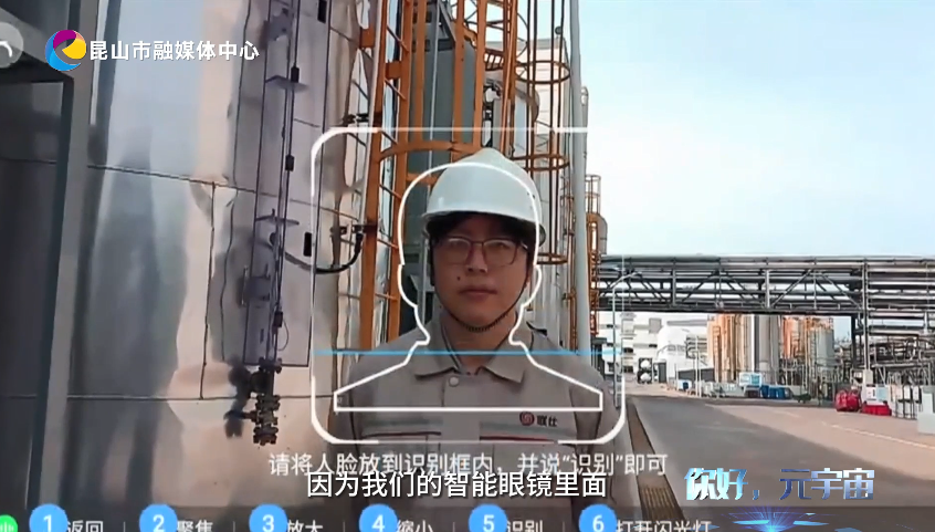 我现在来到了联仕新材料(苏州)股份有限公司,我身边的监管人员头上戴的这款安全帽,其实它里面大有乾坤,内置了AR智能眼镜,大大方便了企业安全生产的监管,一起跟我去看看吧!