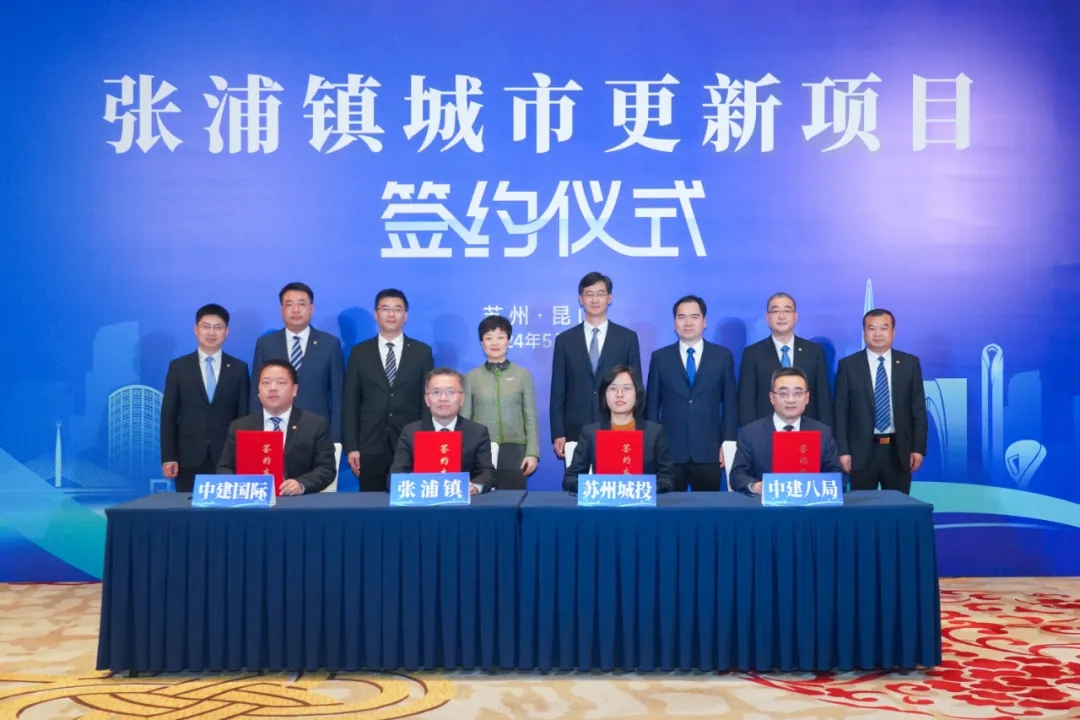 5月5日,张浦镇城市更新项目签约,苏州城投携手中建国际、中建八局等合作伙伴,与张浦镇人民政府达成战略合作,在城市建设、住宅开发、产业提档、产城融合等方面开展多维合作,推动产业开发及城市配套等项目快速发展,全力打造中国式现代化的小城市标杆。昆山市委副书记、市长陈丽艳,苏州城市建设投资发展(集团)有限公司党委书记、董事长盛梦龙出席活动并见证签约。苏州城市建设投资发展(集团)有限公司党委副书记、总经理殷辉礼,中建国际建设有限公司党委委员、副总经理纪庆省,中国建筑第八工程局有限公司副总经理刘书冬;昆山市委常委、常务副市长张峰,副市长王昊参加活动。