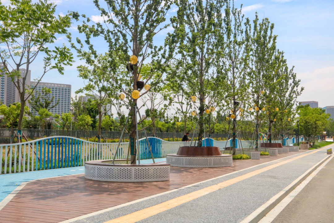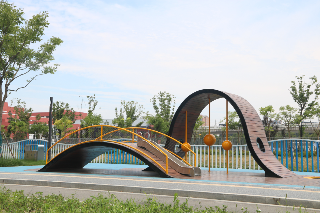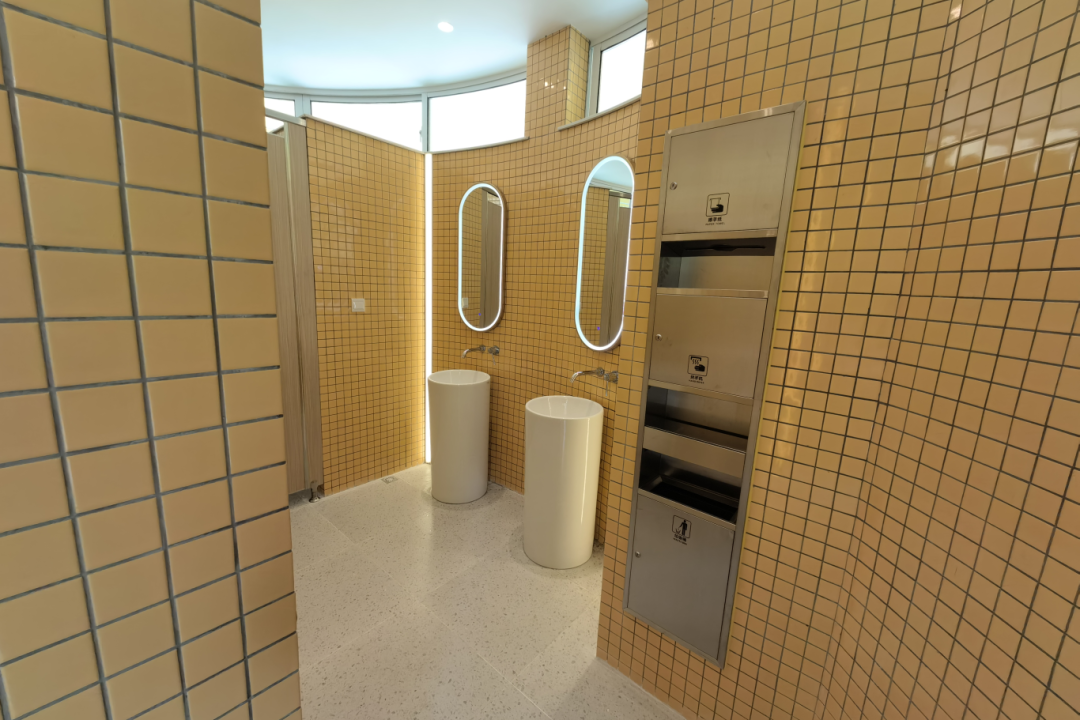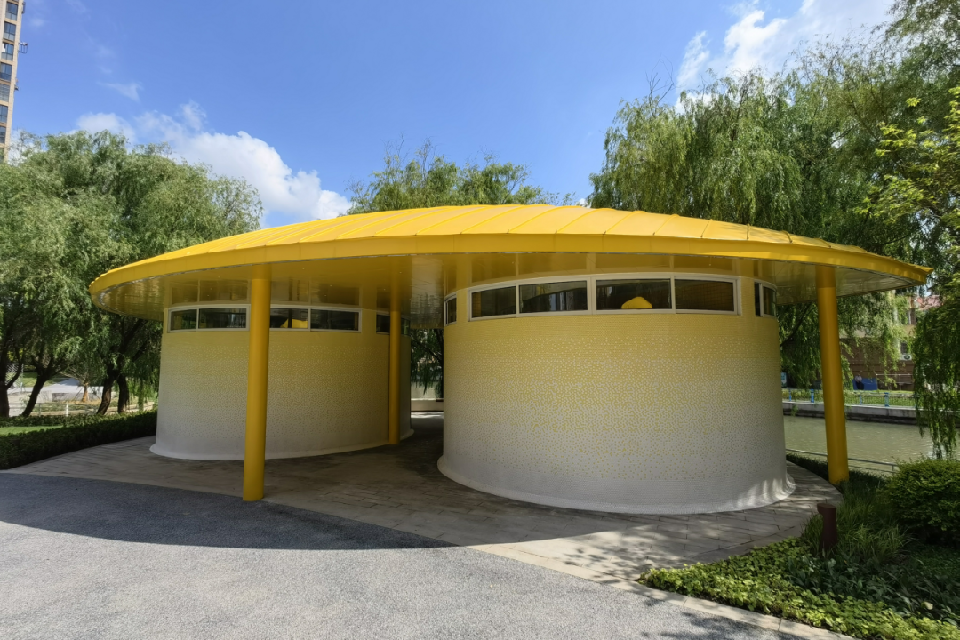 此外,公园的配套管理用房和公共卫生间在设计时突破传统“方正”造型,采用圆形外轮廓,同时配以叶脉形状的造型屋顶,使建筑风格与公园的弧形布局更加和谐统一。男女卫生间、第三卫生间、母婴室、管理间和物料间都按照最新公厕建设标准配置齐全。公共卫生间还荣获苏州市2023年度“最美公共卫生间”的称号。