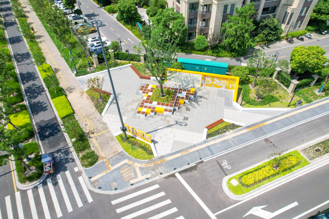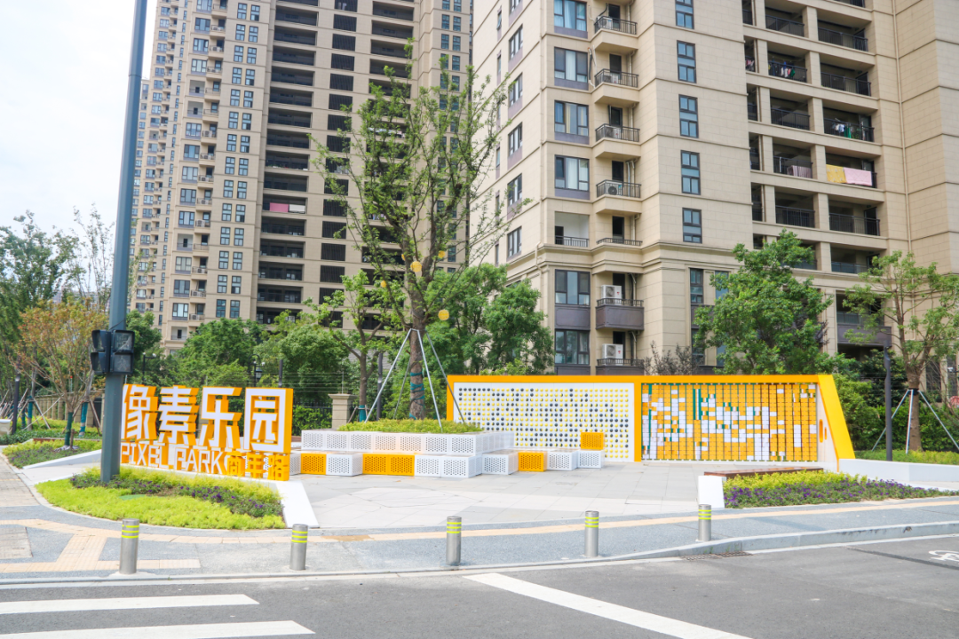 像素乐园位于商年路与光明路路口西南角,以“像素”为主题的趣味街角,运用黄白主题色提亮原本单一枯燥的场地,激活街角空间。以大树为中心,围合高低错落的像素方块坐凳,为周边居民提供了休憩等待的空间,促进儿童和社区居民友好关系的发展。互动展示景墙丰富景观交互体验,为孩子们在上学、放学路上增添趣味。项目力求打造“儿童友好型”公共空间,提升公共空间的环境品质,考虑不同使用人群的需求,不断提升市民幸福指数,让城市更加宜居。遇见商年路,和孩子们欢声笑语相伴。