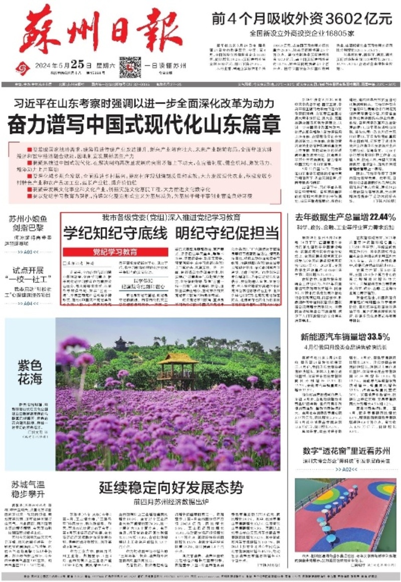 市发展改革委党组书记、主任虞伟表示,要深刻理解把握党中央决策部署和省委、市委工作要求,深入学习习近平总书记重要讲话和重要指示精神,切实推动党纪学习教育成果转化为推动苏州经济社会高质量发展实效;要树牢正确的权力观、政绩观、事业观,始终做到守底线、敢作为、善作为,持续深化领导干部联系点、优胜处室评选等长效机制,激励全委党员谋大局、做示范、勇担当,持续加强项目招引,不断优化服务调度,全力延续今年以来经济发展的良好态势,勇挑大梁为全国全省大局作出更大贡献。