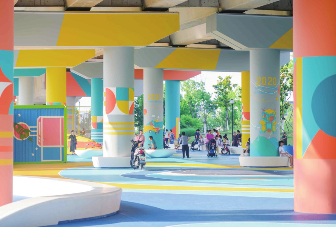 项目位于巴城镇祖冲之路桥下、临湖路两侧,以“乐享桥下空间,乐享城市生活”为愿景,以科教、航天展示和点亮城市为主题,分为科技兴国主题区、入口广场区、舞动广场区、休闲阅读区、儿童活动区和篮球场等区域,为不同群体提供丰富多样的活动体验。