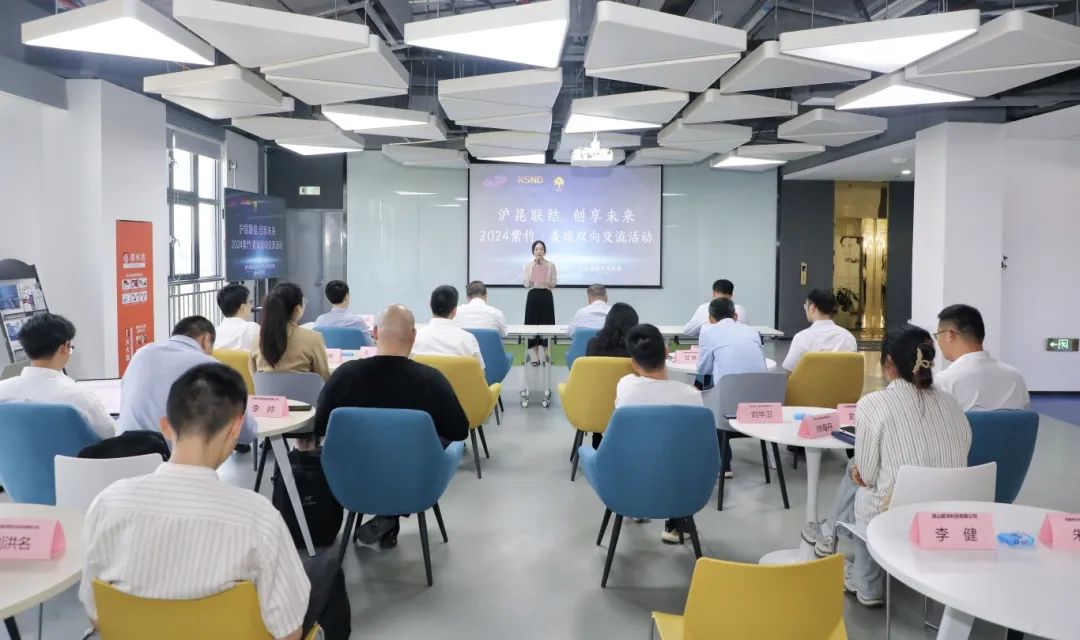 5月29日,“沪昆联结、创享未来”2024紫竹·麦垛双向交流活动举行,来自上海紫竹高新区和紫竹麦垛(昆山)科技企业加速器的10多家企业面对面座谈交流,畅叙友情、共话发展、共赢未来。紫竹高新区党委书记、副总经理骆山鹰,麦垛科技园管理有限公司总经理陈洪云,区科技局主要负责人参加活动。