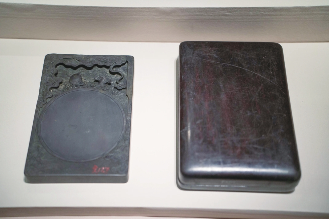 “‘状元游街’花板描绘了一幅状元身戴红花骑大马游街庆祝的景象,制作工艺精湛,艺术价值极高。”戏曲百戏博物馆相关负责人介绍,“端砚出产于唐代初期端州,是中国四大名砚之一,以石质坚实、润滑、细腻而驰名于世,用端砚研出之墨汁细滑,书写流畅不损毫,字迹颜色经久不变。传说,鲤鱼跳过龙门则幻化为龙,‘鲤鱼跳龙门’端砚象征着金榜题名、事业有成。”
