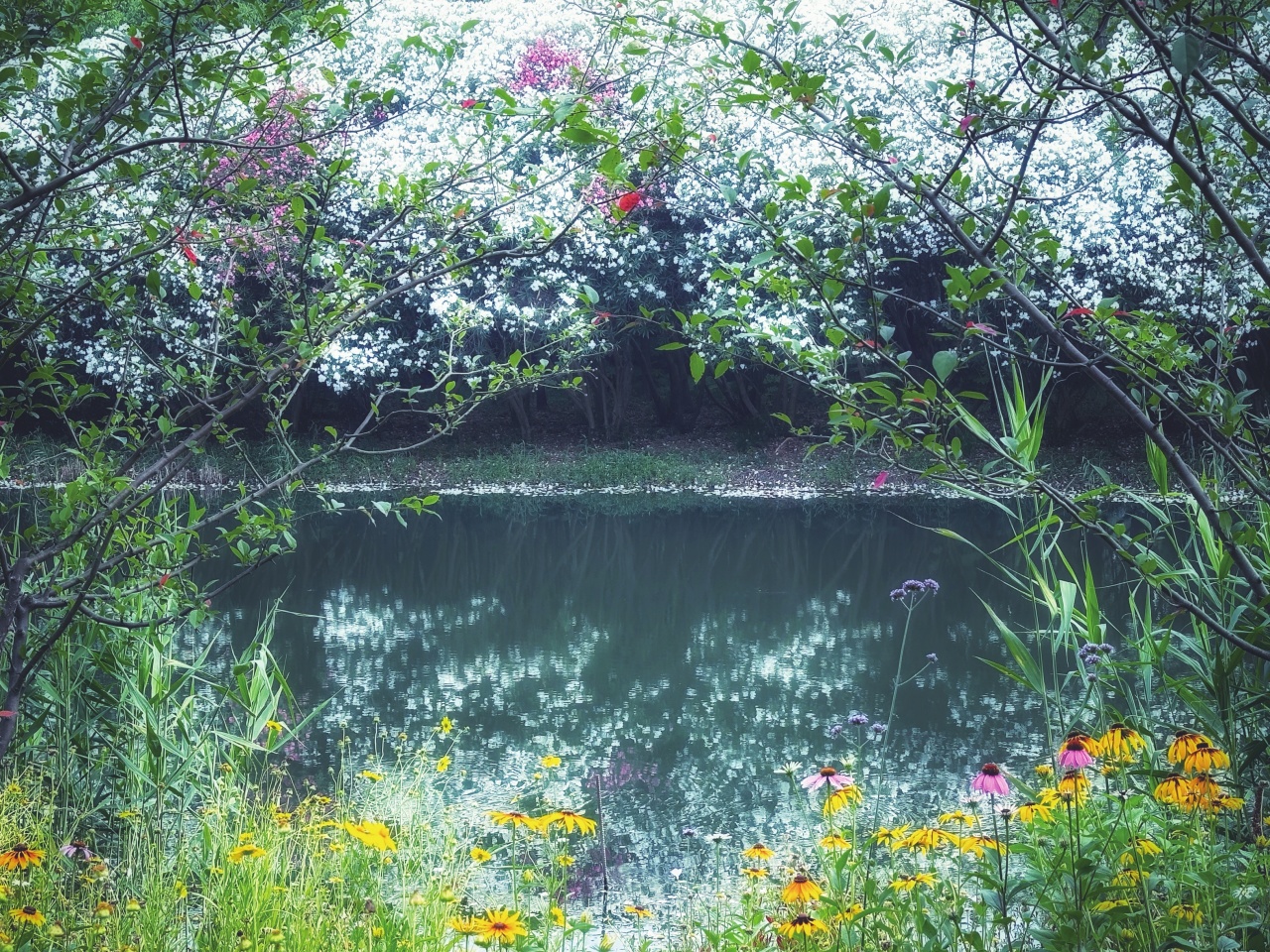 人言春去芳菲歇,丽蕊谁知正勃兴。出水芙蓉波照火,浴霞茉莉韵含冰。夏天的花是火热与激情的,河岸边、步道上、树丛间……她们迎着烈日尽情绽放,竭尽全力展示自己的美丽,绚烂地过完又一年花期。