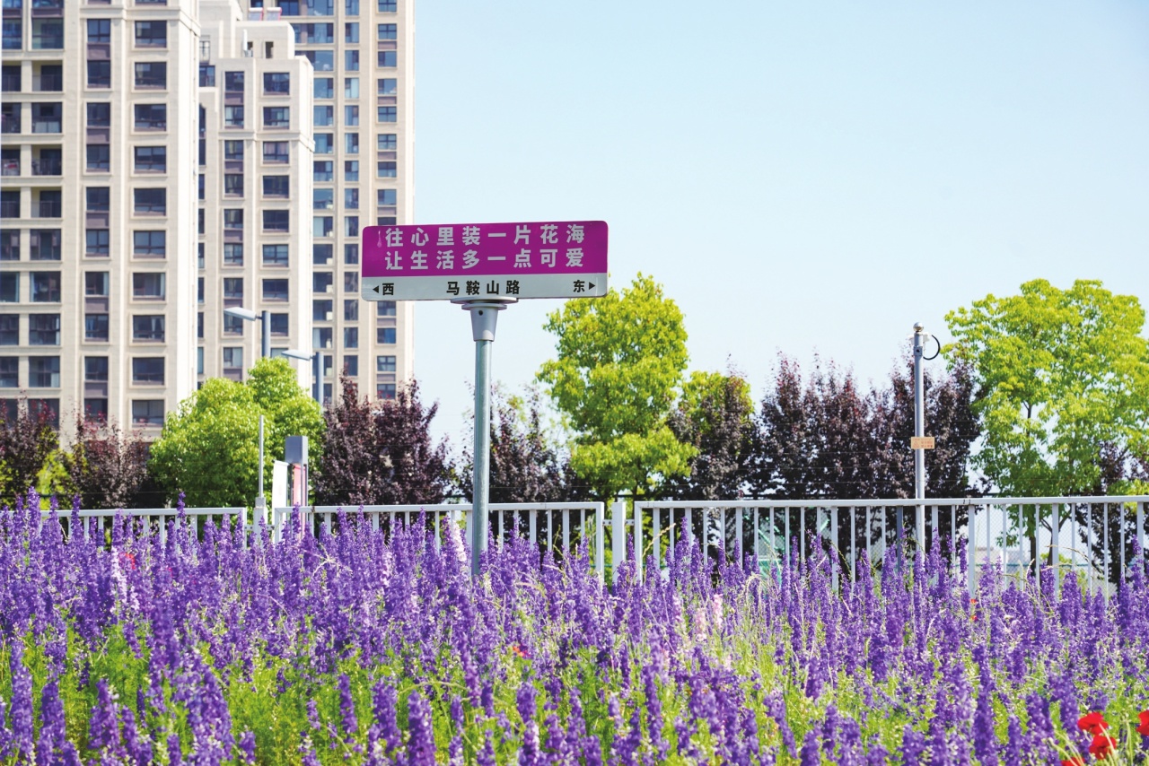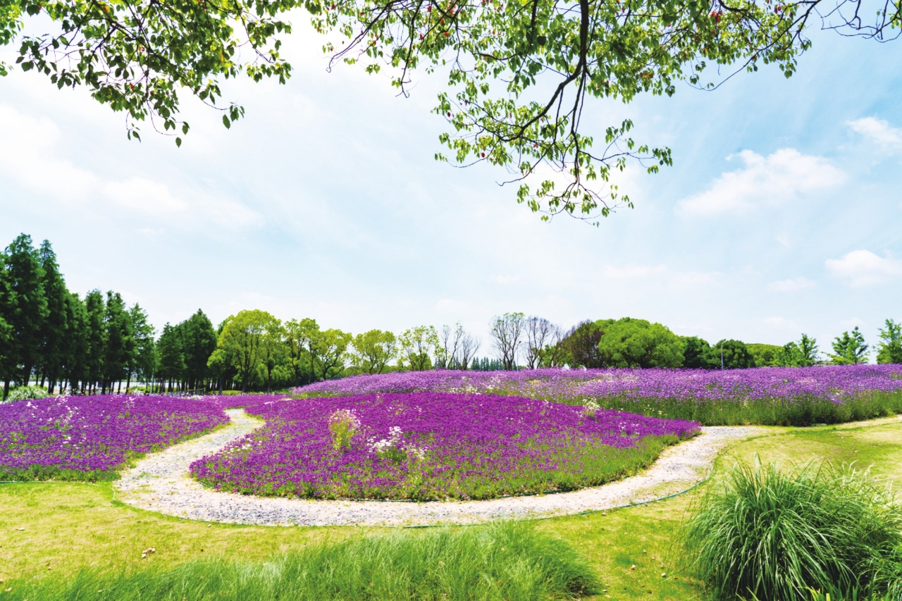在太仓塘滨水公园,遍地金鱼草、虞美人、波斯菊、月见草热烈向上生长着,红的、紫的、黄的、粉的,入眼均是快乐的多巴胺色彩,不时吸引游人驻足欣赏、拍照留念;