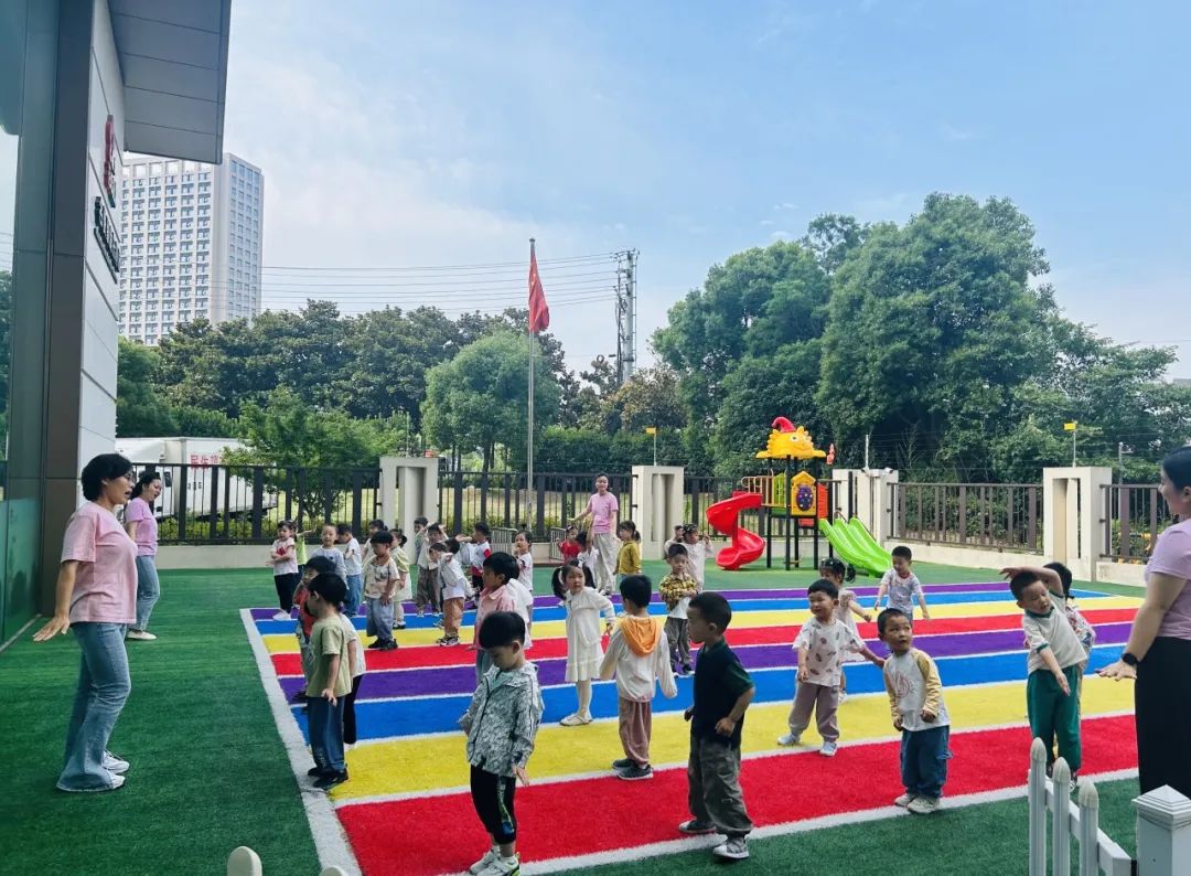 ▲花儿优育·名俊豪庭托育园内孩子们在进行户外体育锻炼