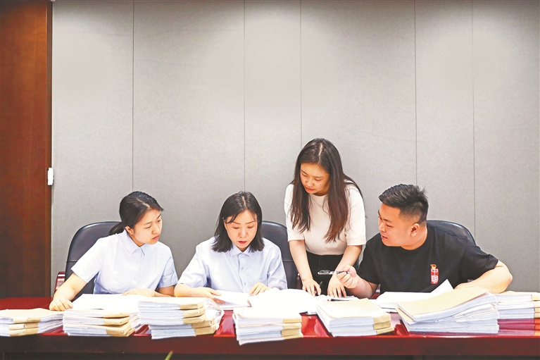 ▲重庆市南岸区纪委监委严查党员干部利用职权或者职务上的影响违规占用公物、侵占公私财物等行为。图为该区纪检监察干部对照《中国共产党纪律处分条例》,对相关案件进行分析。陈佳佳 摄