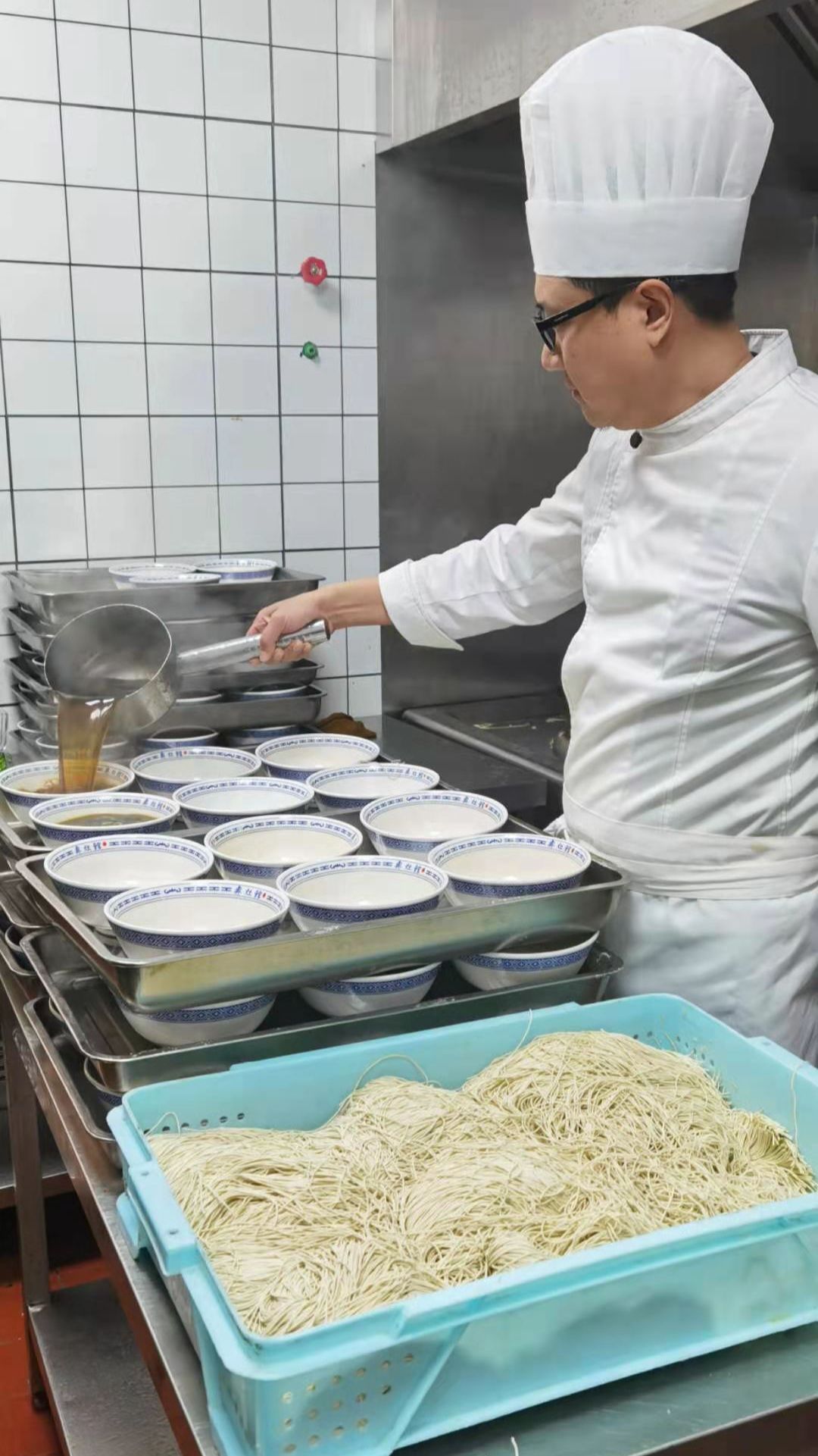 奥灶面传承培养人浦建强告诉记者,这一碗红油汤,里面包含着猪骨、猪蹄、河虾、小毛蟹、老汤等配料,需用小火熬煮6小时以上,才能得到这沁人心脾的美味。当班的时候,浦建强凌晨3点多就要进厨房工作,老汤继续加热熬煮;面条、浇头当日现做现卖,不隔夜,确保食材新鲜美味;流水下面,少投勤捞,面条只需放入水中七八秒,随后快速捞入爪篱,甩干面浆水,将其卷成整齐的“鲫鱼背”,放入盛好汤的碗中。浦建强说,为了做好这碗面,从事面点制作20多年的他,已向奥灶面传承人沈勇健拜师学艺了8年,每天勤学苦练,力求精益求精,希望将这百年的昆山味道更好地传承下来。