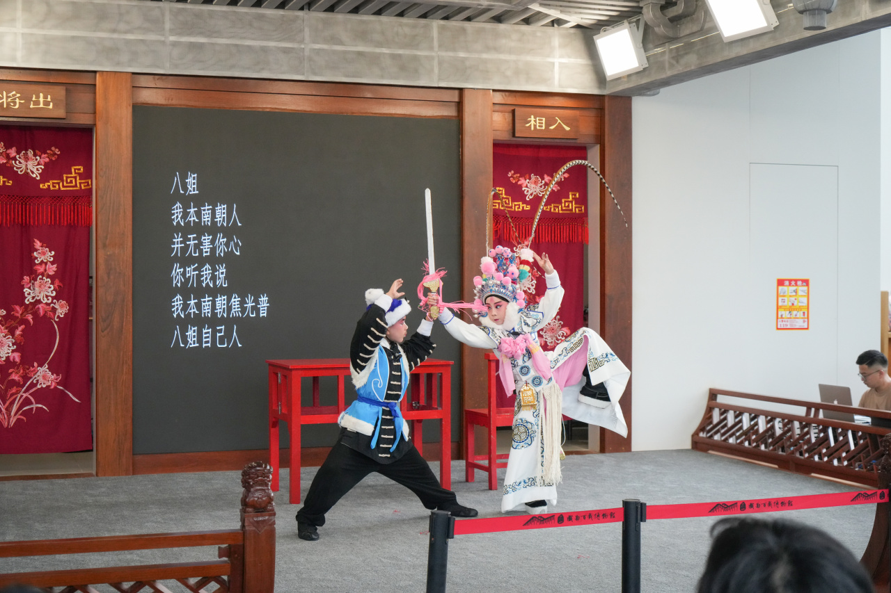 舞台上,来自石牌中心小学小昆班的小演员们带来了昆曲《挡马》,英姿飒爽的扮相、高难度的“椅子功”、婉转悠扬的唱腔……精彩的表演让现场气氛瞬间被点燃。随后,小演员们还为观众们送上了昆曲《弹词》,稚嫩又扎实的念白及唱腔,让观众眼前一亮。今年上初二的孙佳渝看完小演员们的表演后,兴奋地告诉记者:“小朋友真的太厉害了,很多动作大人都做不了,他们表演起来却非常‘丝滑’。我很喜欢中国传统文化,昆曲真的是传统文化的宝藏,以后我要和爸爸妈妈一起多看昆曲,更深入了解昆曲。”