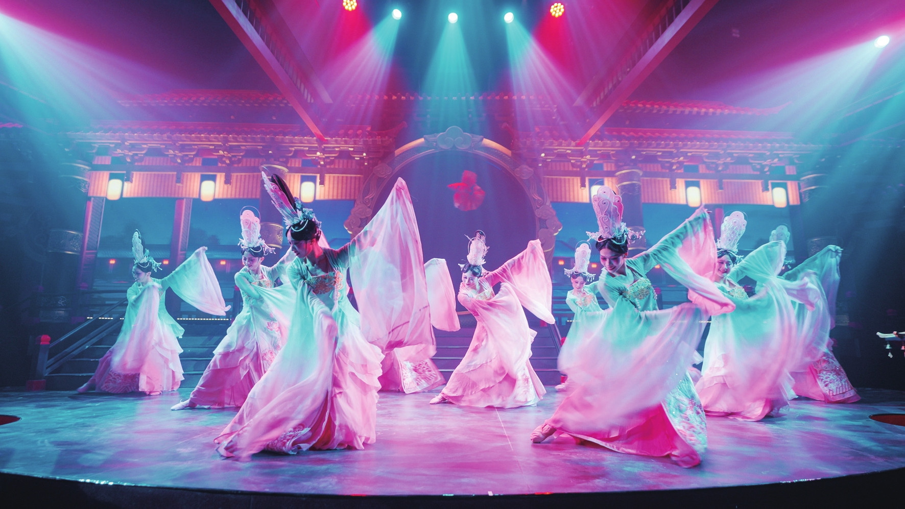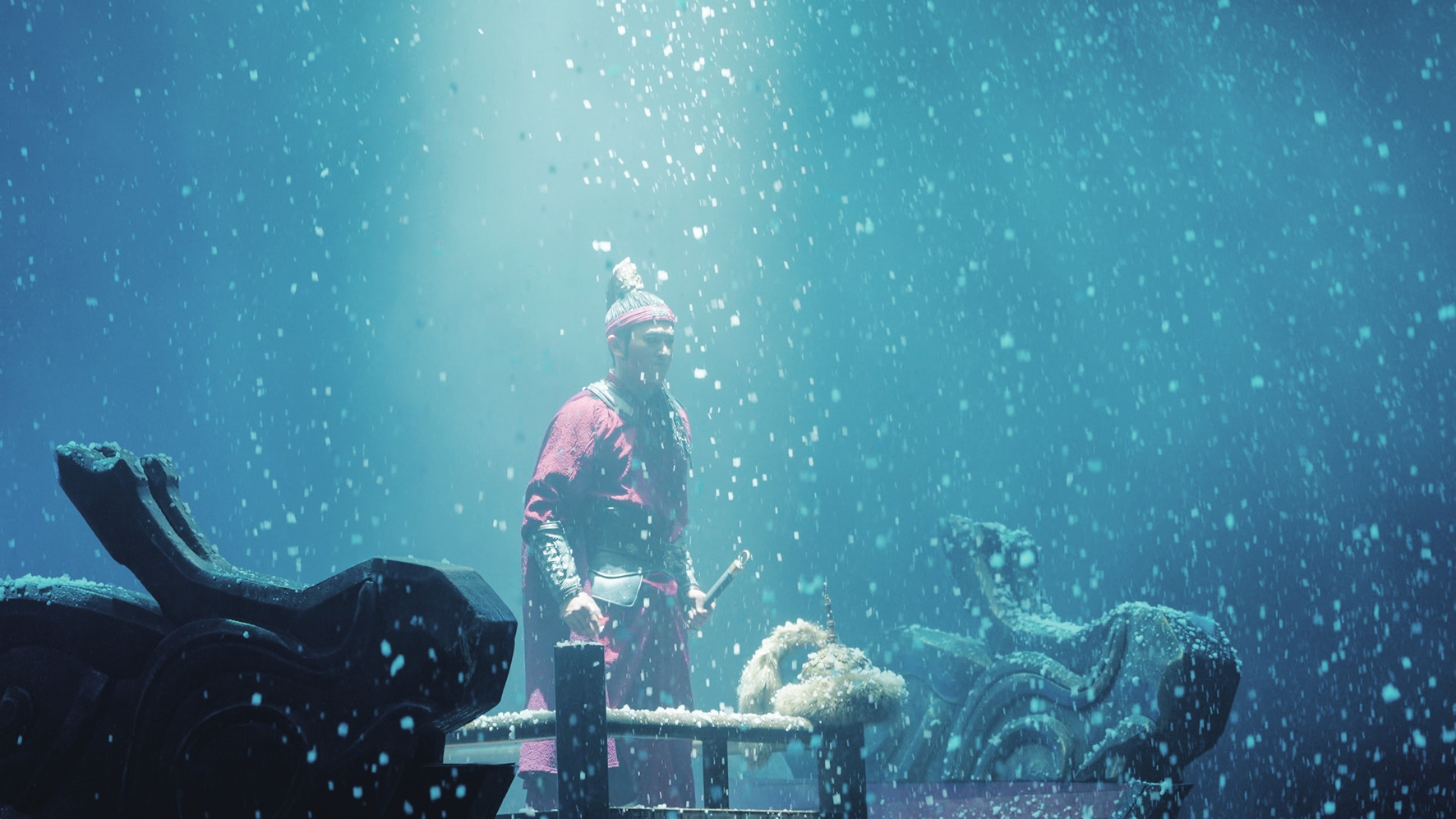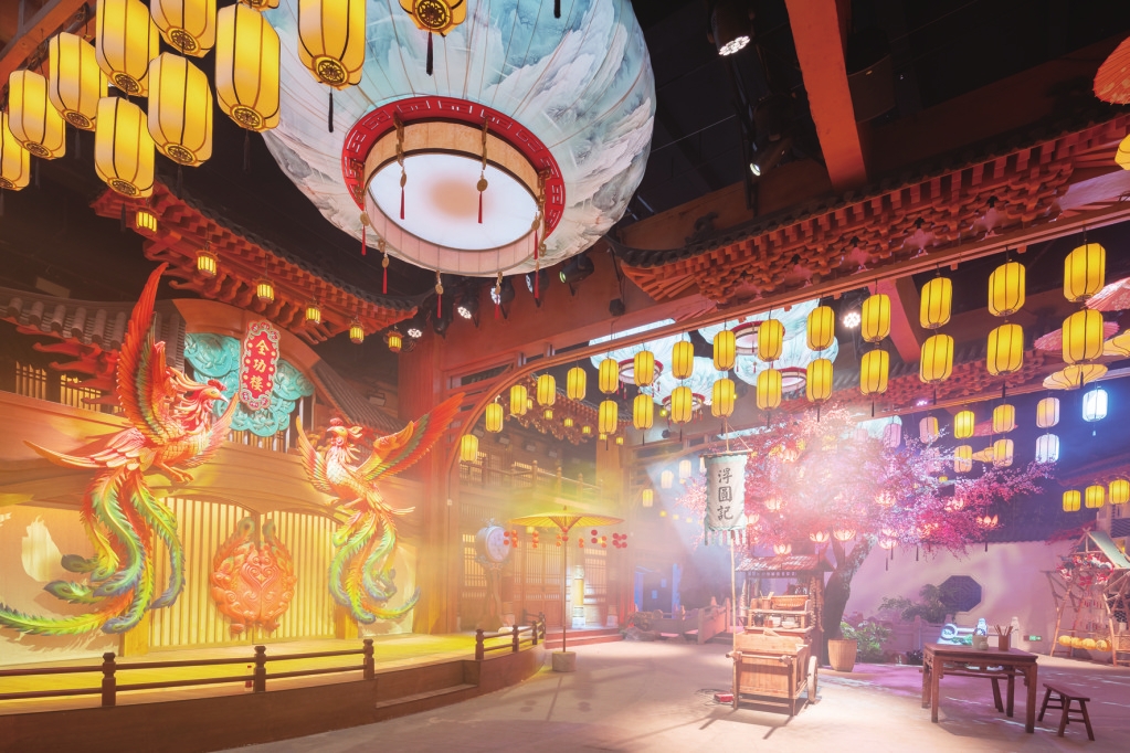 沿着“鱼贯通道”,观众穿越“时光隧道”进入“旧梦”。这里满眼多彩花灯,众多NPC和舞龙将观众引入汴京上元灯节繁华夜市;漫步“入画”,一场3D虚拟空间与现实舞蹈相结合的表演尽显宋代美学;踏上“出征”,一场运用水炮、威亚、船技等特技的“战斗”,使观众仿佛置身“古战场”;步入“寻路”,3D环形巨幕,百盏莲花灯,亦真亦假的虚实结合让观众不虚此行。