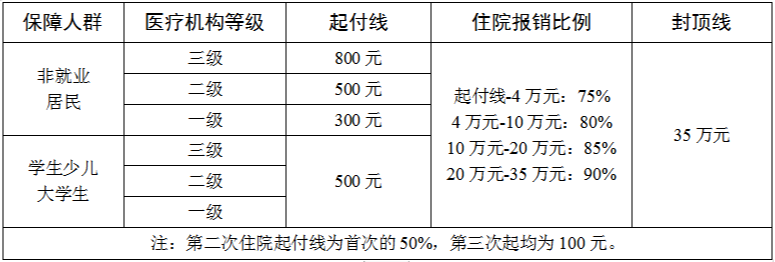 调整后,居民医保4万元以下的住院报销比例将有5-10个百分点提高。居民医保住院封顶线35万元以上的合规医疗费用纳入我市大病保险补助。