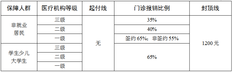 (二)统一居民医保门诊待遇。2021年1月1日起,统一居民医保门诊医疗机构等级划分、起付线、封顶线、支付比例等门诊待遇与统筹标准一致。
