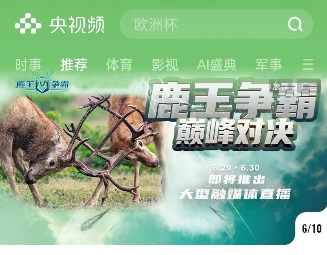 日前,总台江苏总站携手总台各频道和融媒体矩阵平台,发起“鹿王争霸”系列融媒体报道,直播在央视频、微博、抖音、快手、视频号、B站,Facebook,X等多个国内外平台同步推出,全网观看量破2000万,触达人次近1亿。