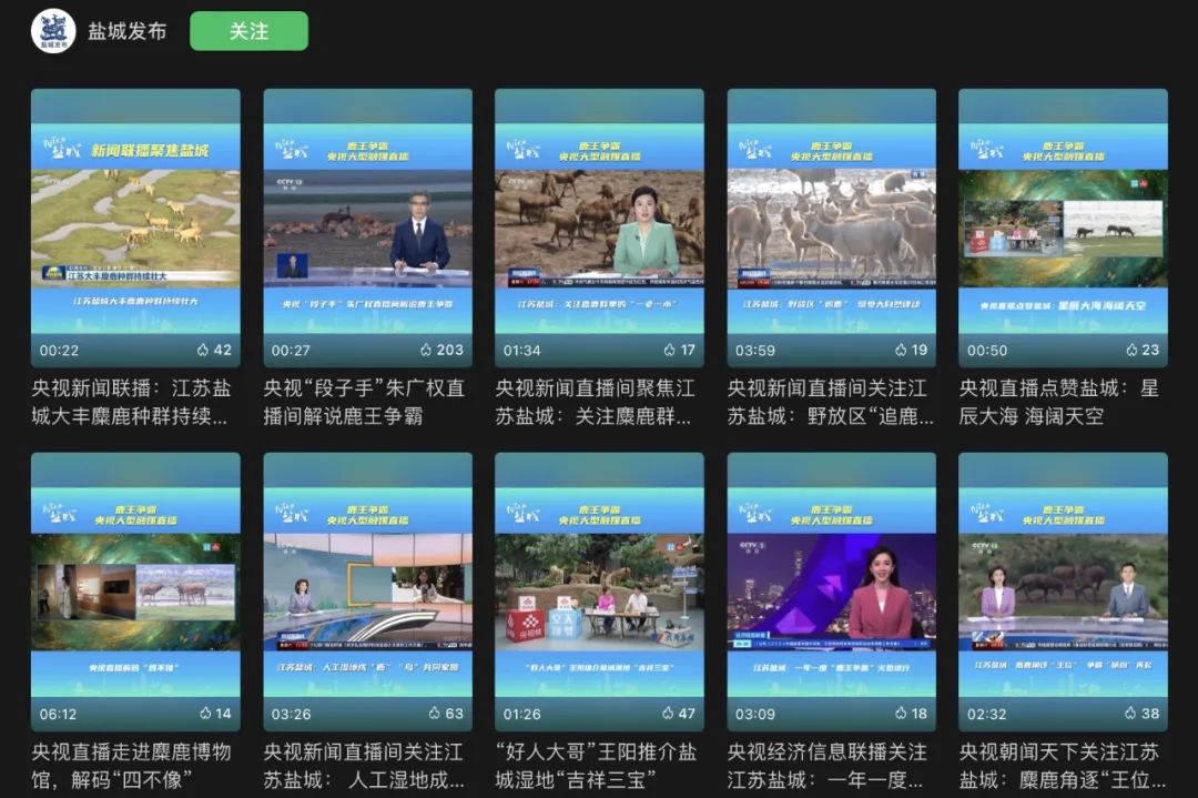 热门博主@好人大哥 王阳作为嘉宾,主持推荐此次直播的相关视频,全网浏览量近200万,@YCTV盐城新闻、@盐城发布等多家媒体合力热议,话题“全球最大的麋鹿种群在江苏大丰”登上抖音热榜,十余万人同时在线观看。