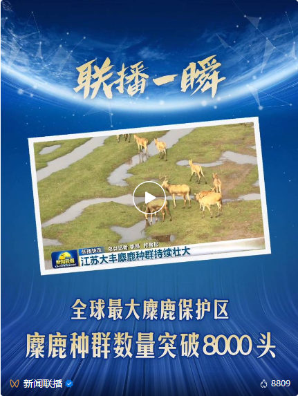 在拍摄中我们了解到,江苏盐城大丰麋鹿种群从1986年引进的39只,如今已经增加到了超过8000只。数量持续壮大,源于一代代“守鹿人”的接力奋斗。